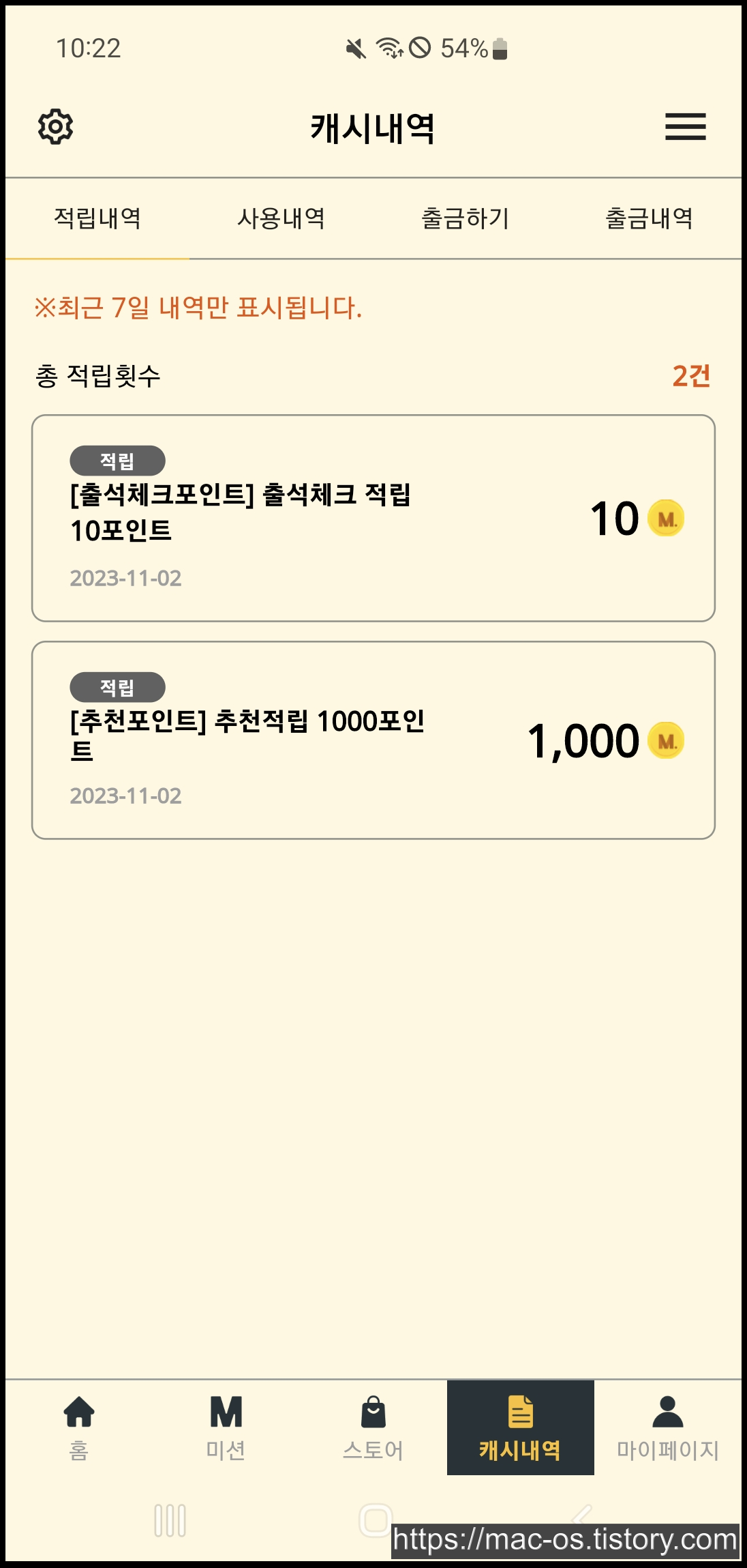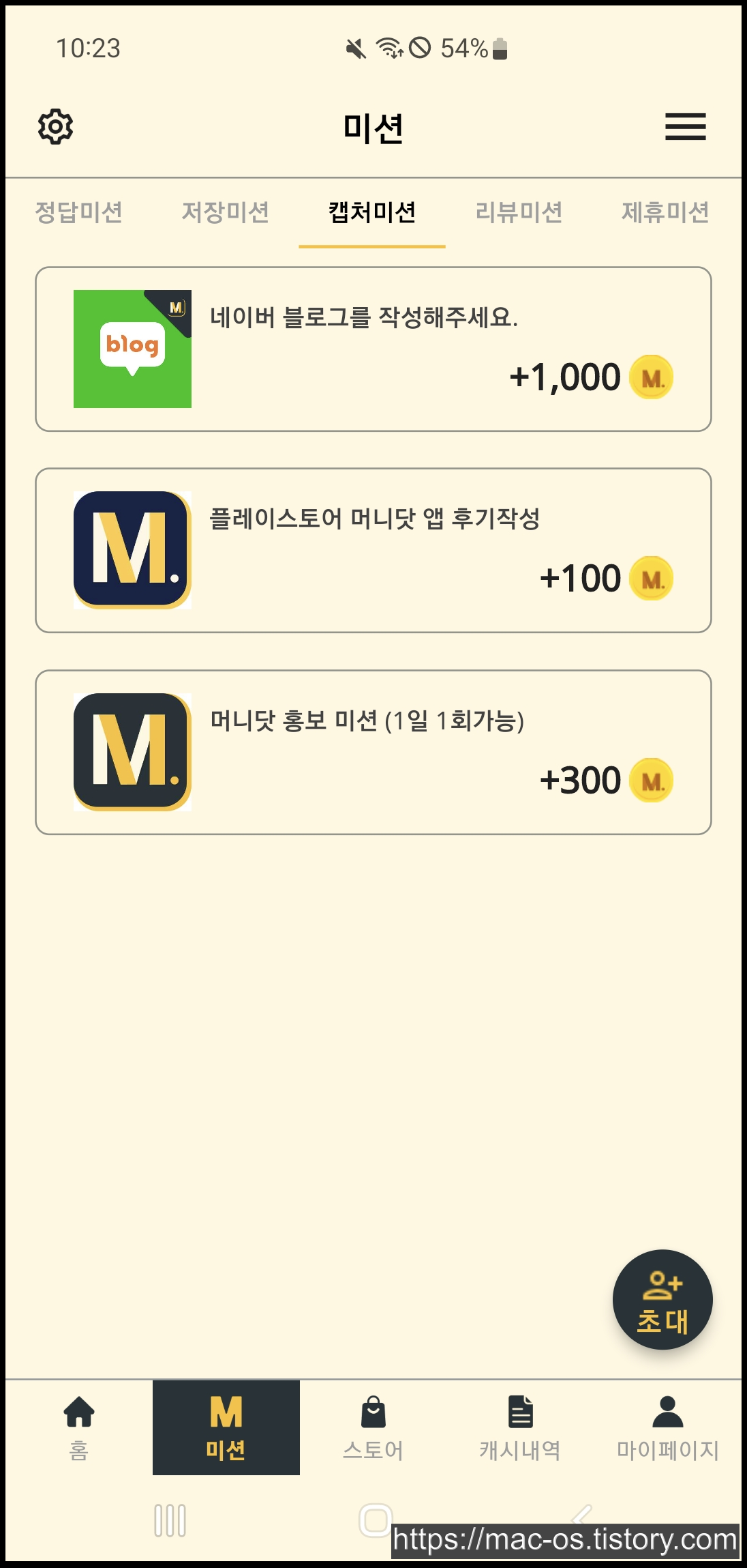 머니닷에는 정답미션, 저장미션, 캡처미션, 리뷰미션, 제휴 미션 이렇게 총 5가지 종류의 미션이 있는데 11월 1일부터 미션 개수가 추가되었다고 하니 조금씩 늘어나는 것 같습니다.