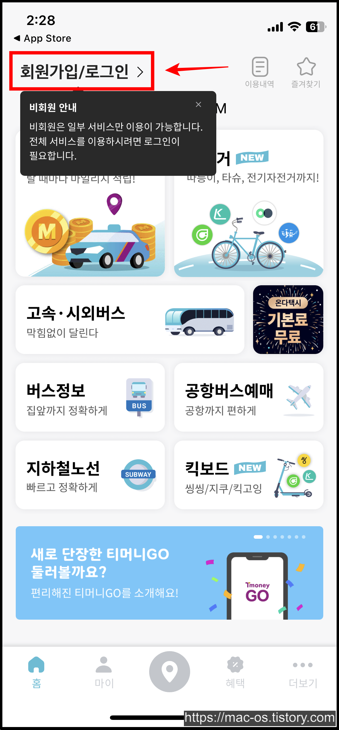 티머니고 앱 살펴보기