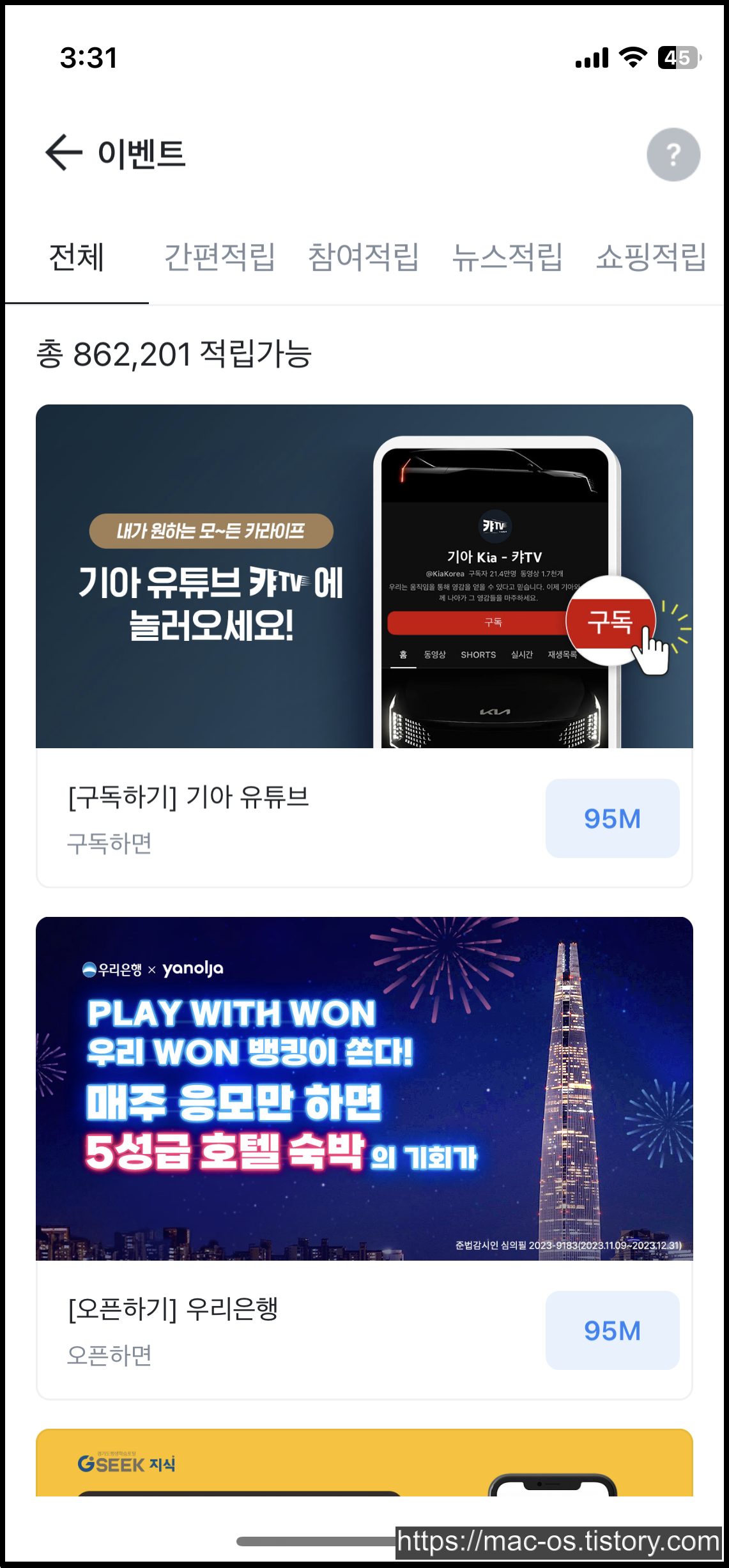 | 휘슬 추천인 M3ICS4, 매일 피드 1개 올리고 최대 300만원 룰렛 돌리기 (0) | 2023.11.16 |
