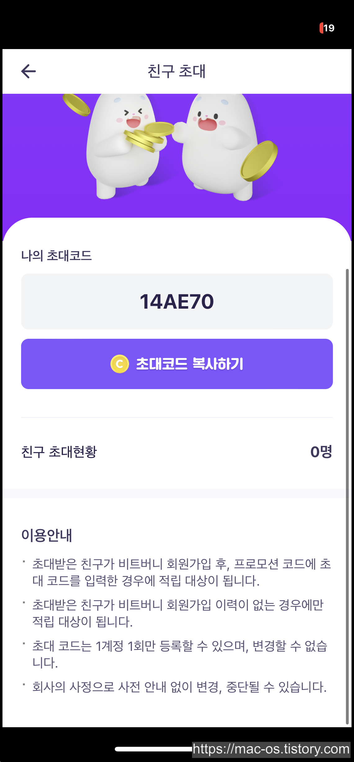 비트버니 프로모션코드 : 14AE70 (복사 가능)