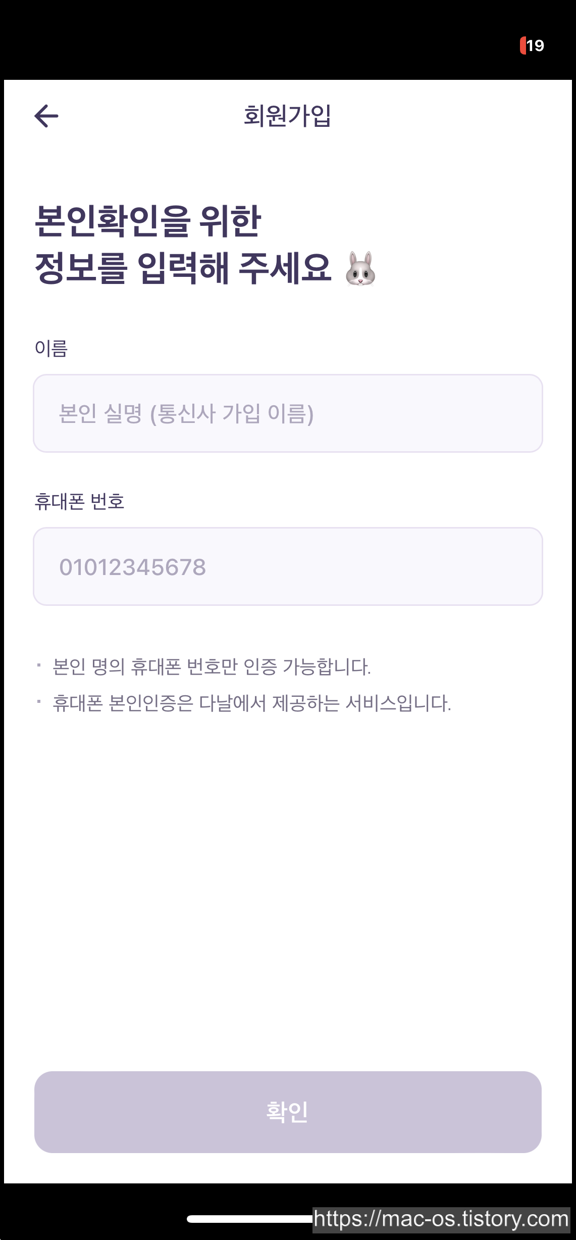 이름과 휴대폰 번호를 입력하고 PASS 본인인증을 진행한다.