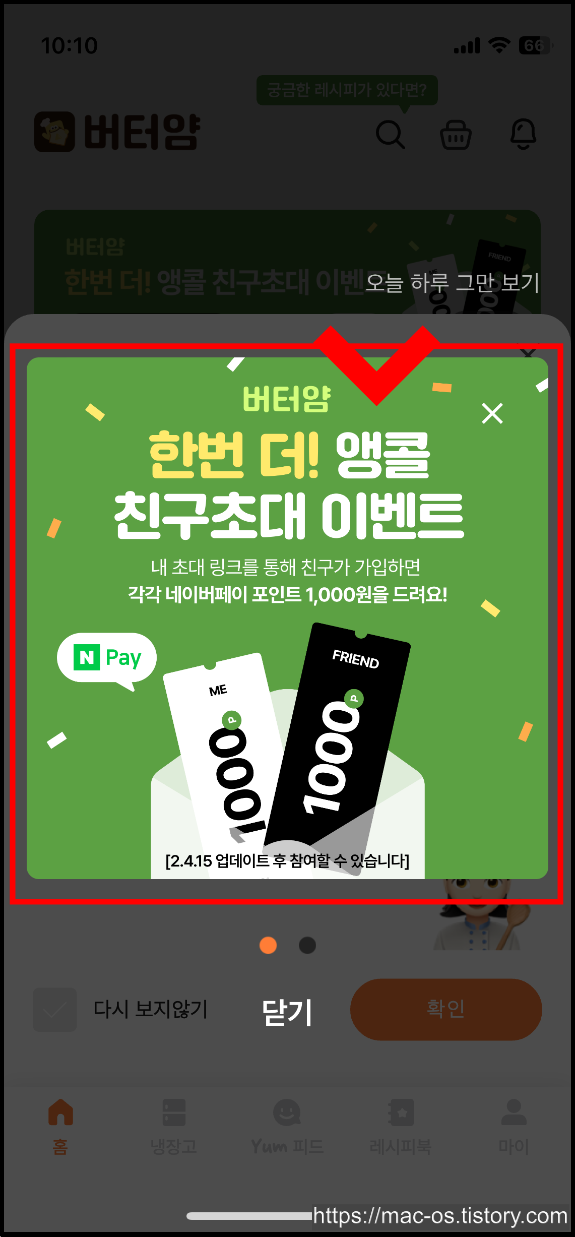 버터얌 친구초대 이벤트 참여하고 네이버페이 1000원 받는 방법