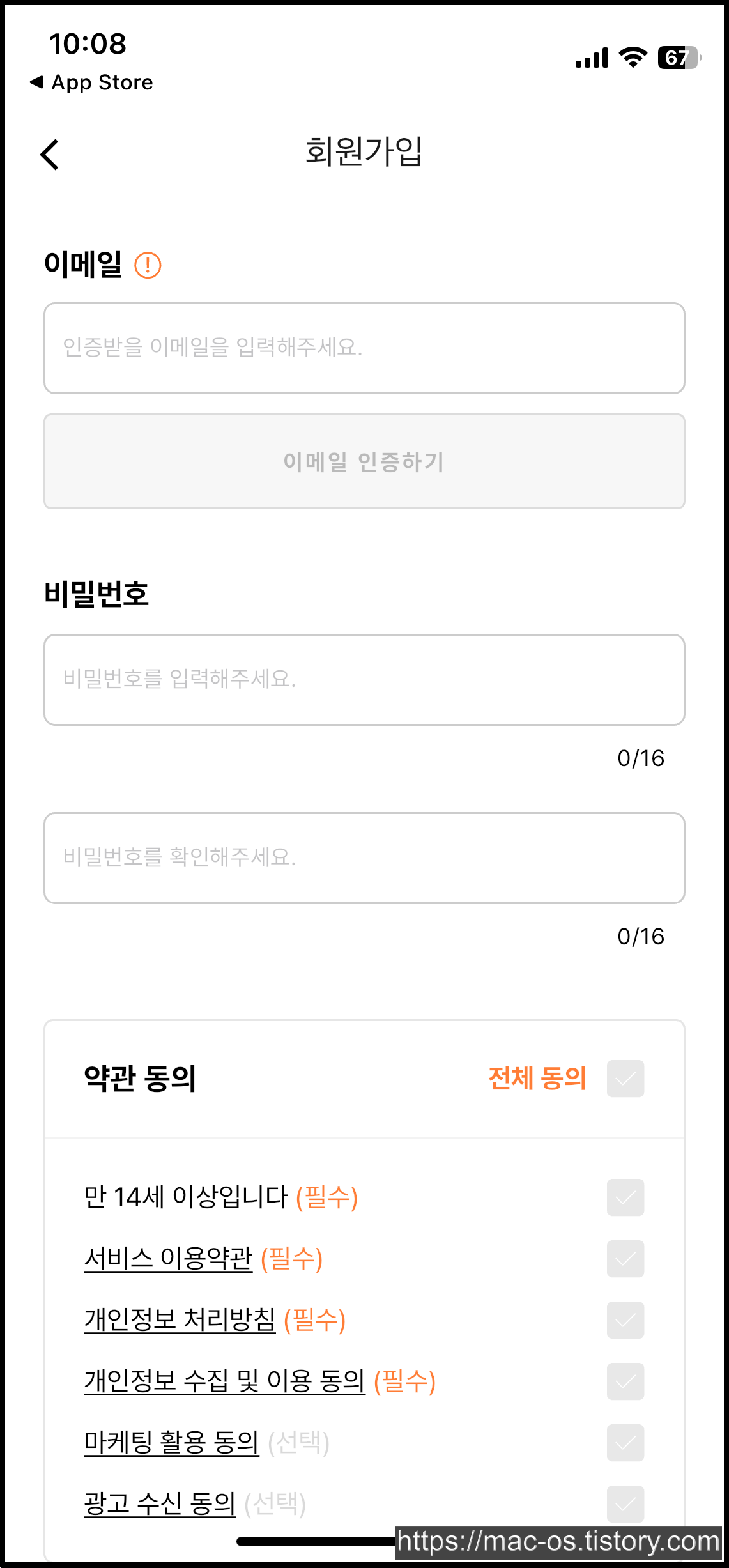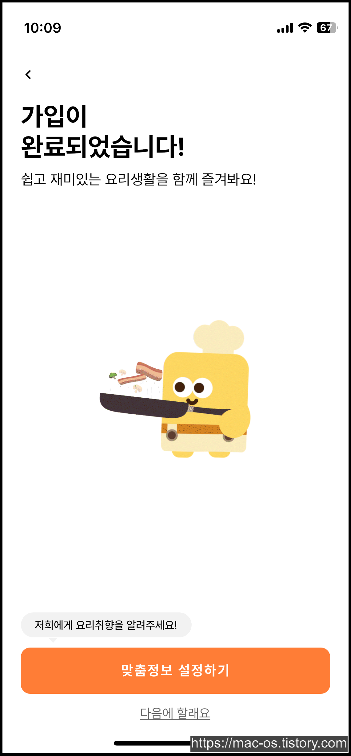 저는 이메일로 가입했습니다. 이메일 인증을 하고 비밀번호를 입력하면 회원가입이 완료됩니다. 맞춤정보 설정은 해도 되고 안해도 됩니다.