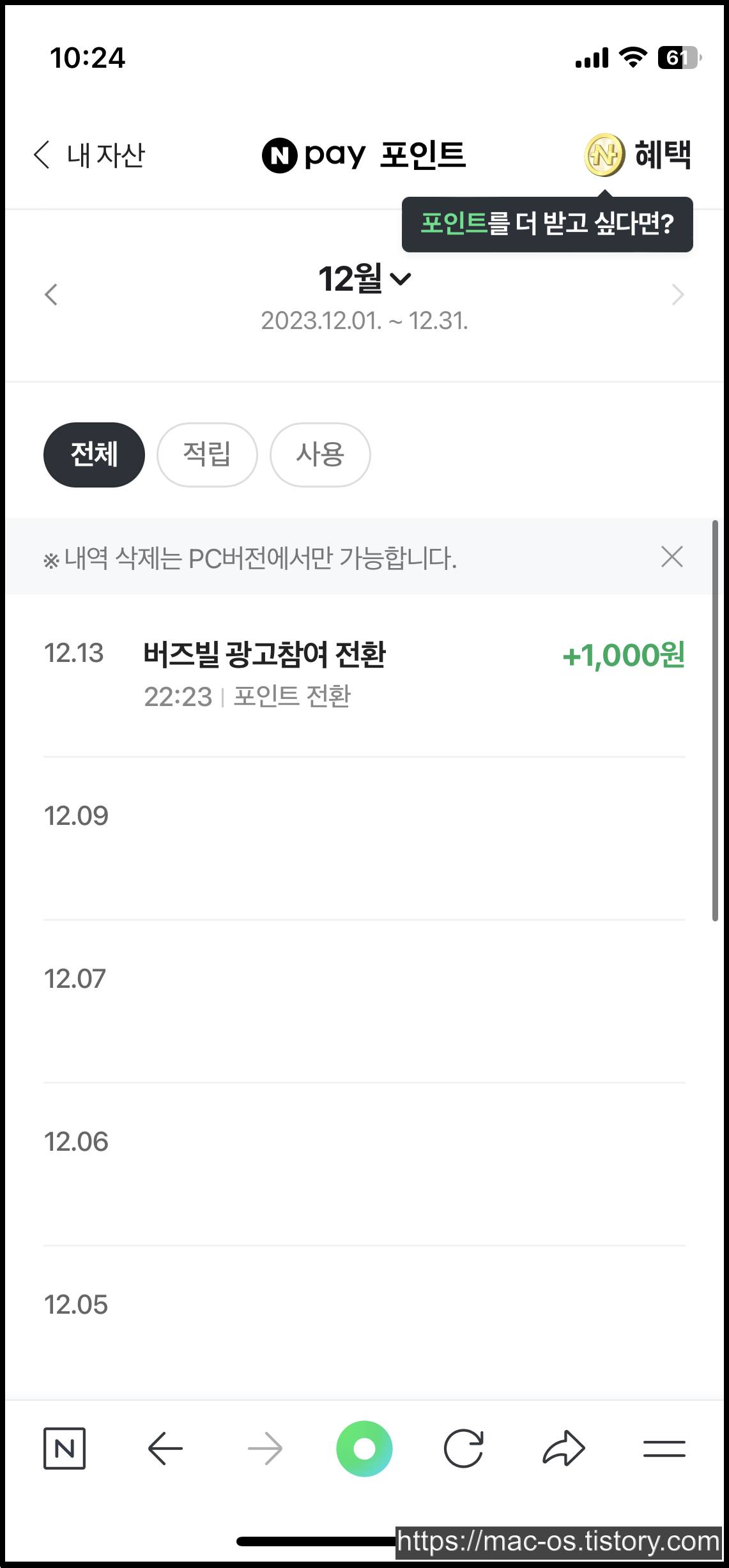여기서 [포인트 전환]을 누르고 네이버페이 포인트 1000원을 선택합니다. 그리고 네이버페이 전환을 해주면 끝입니다.