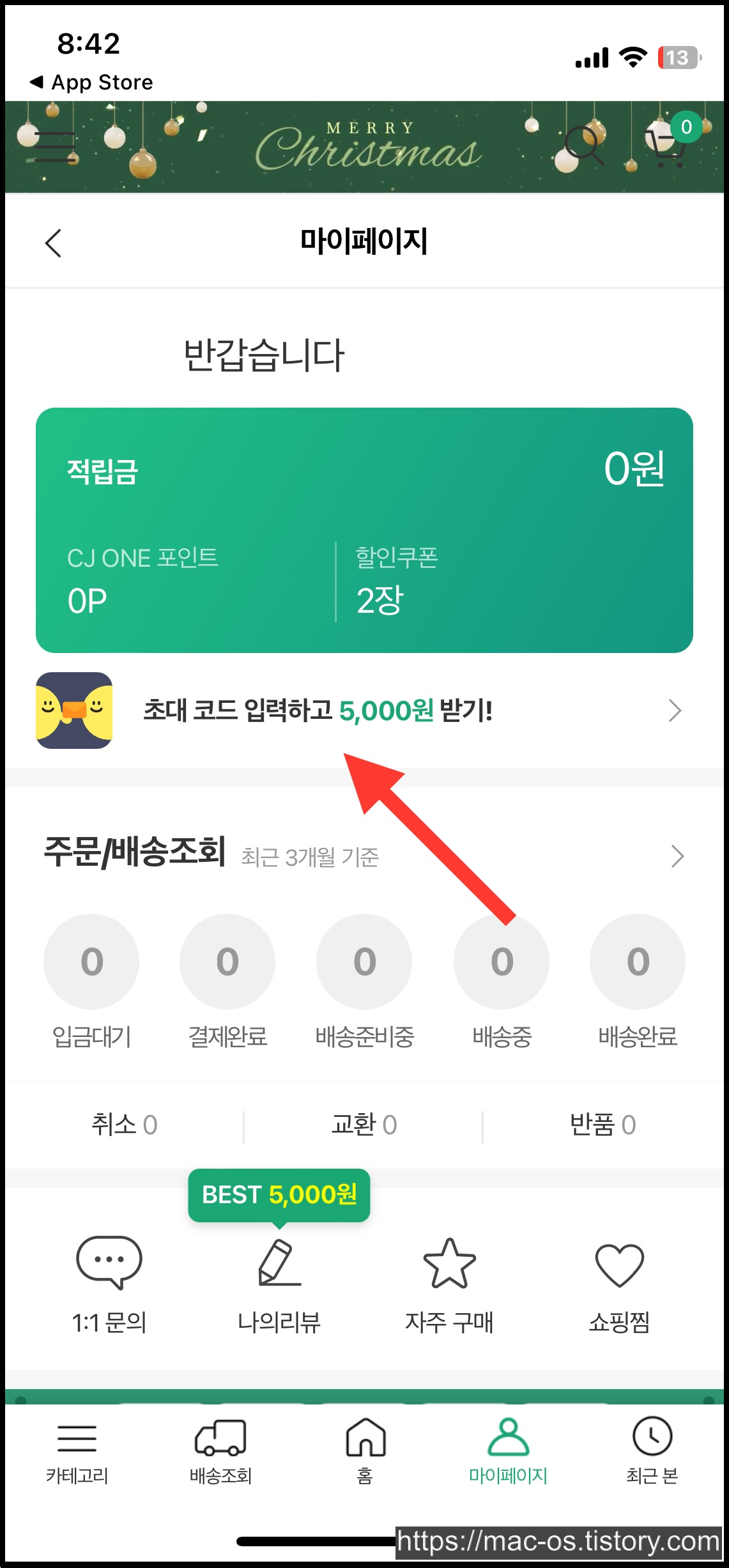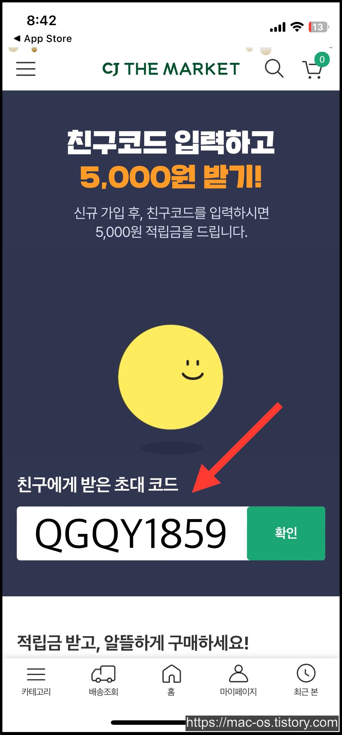 초대코드 입력하고 5000원 받기! 이거 터치해주세요.