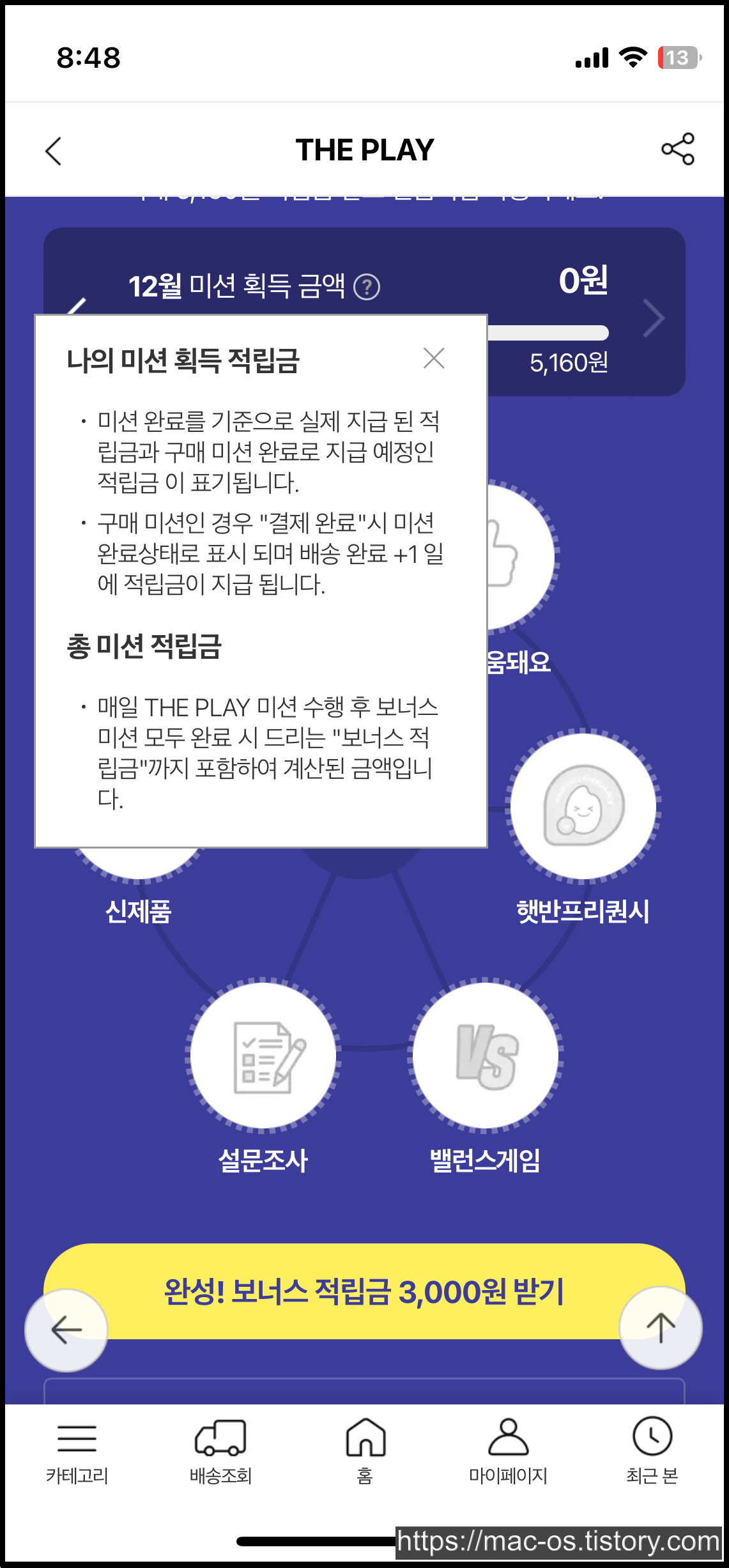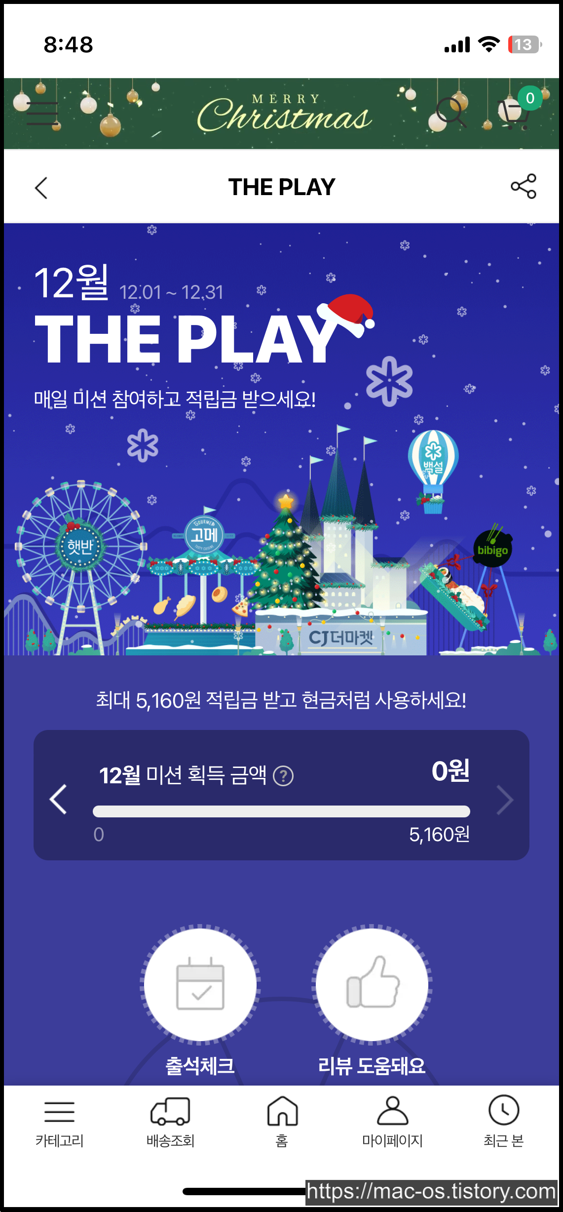 CJ더마켓에는 THE PLAY라는 미션이 있는데요.