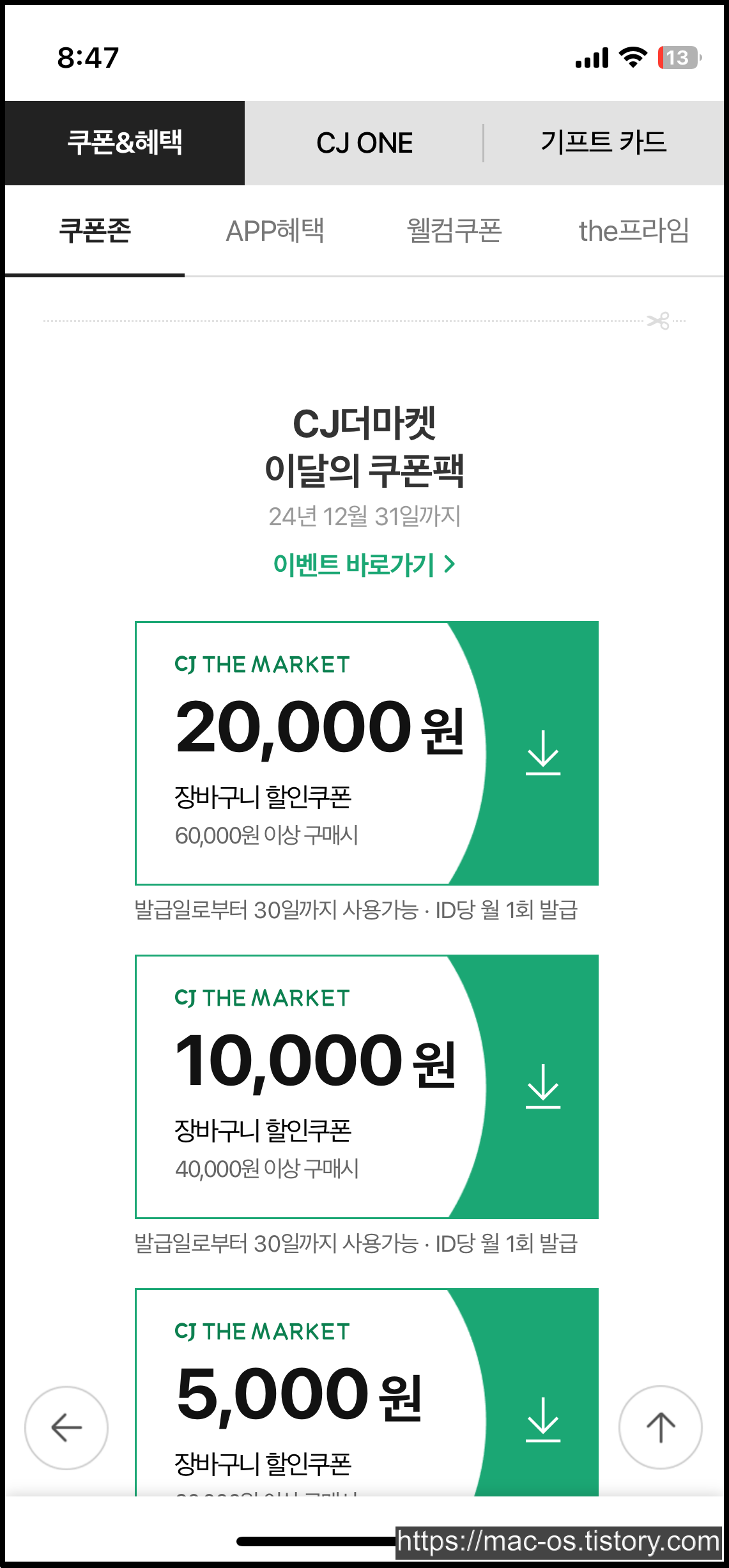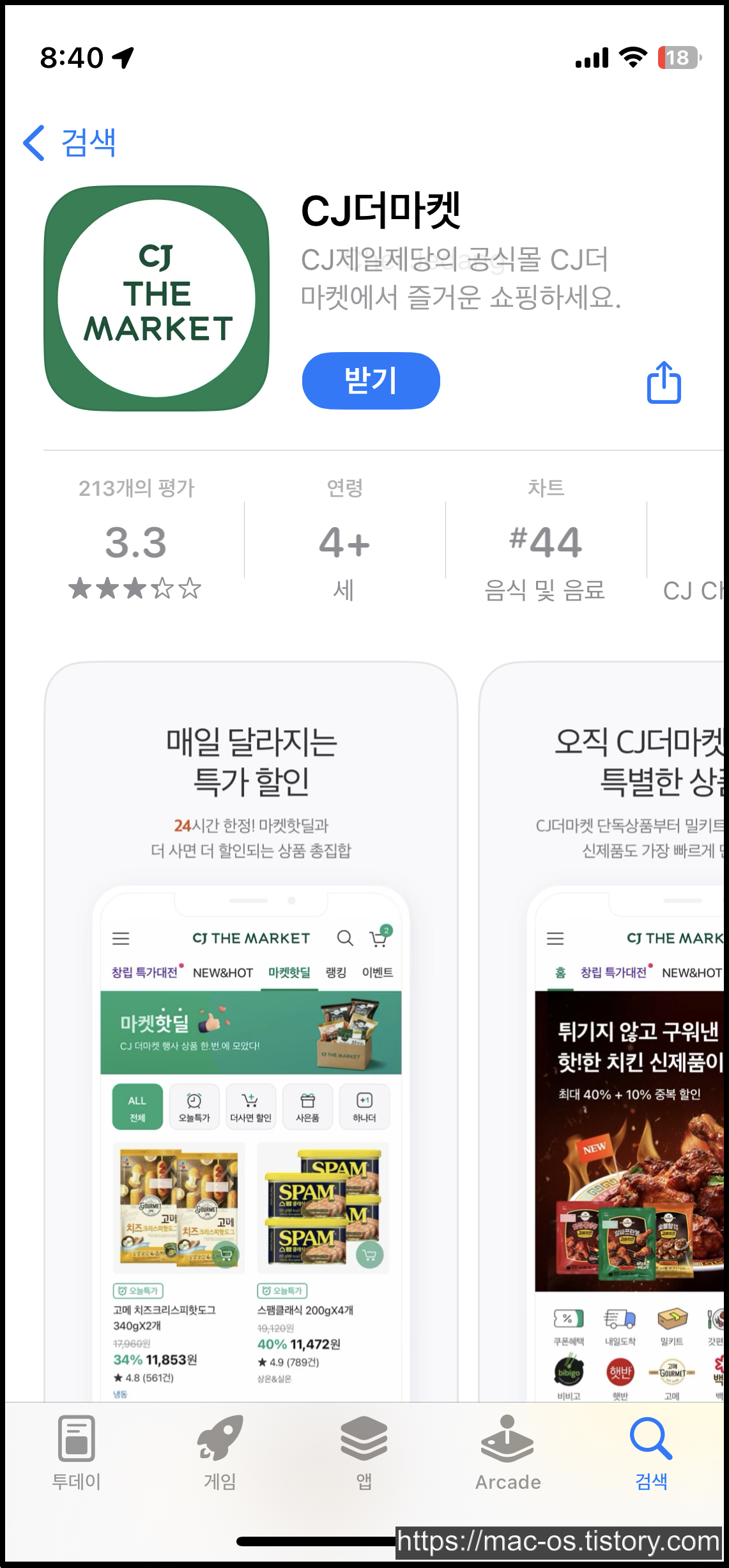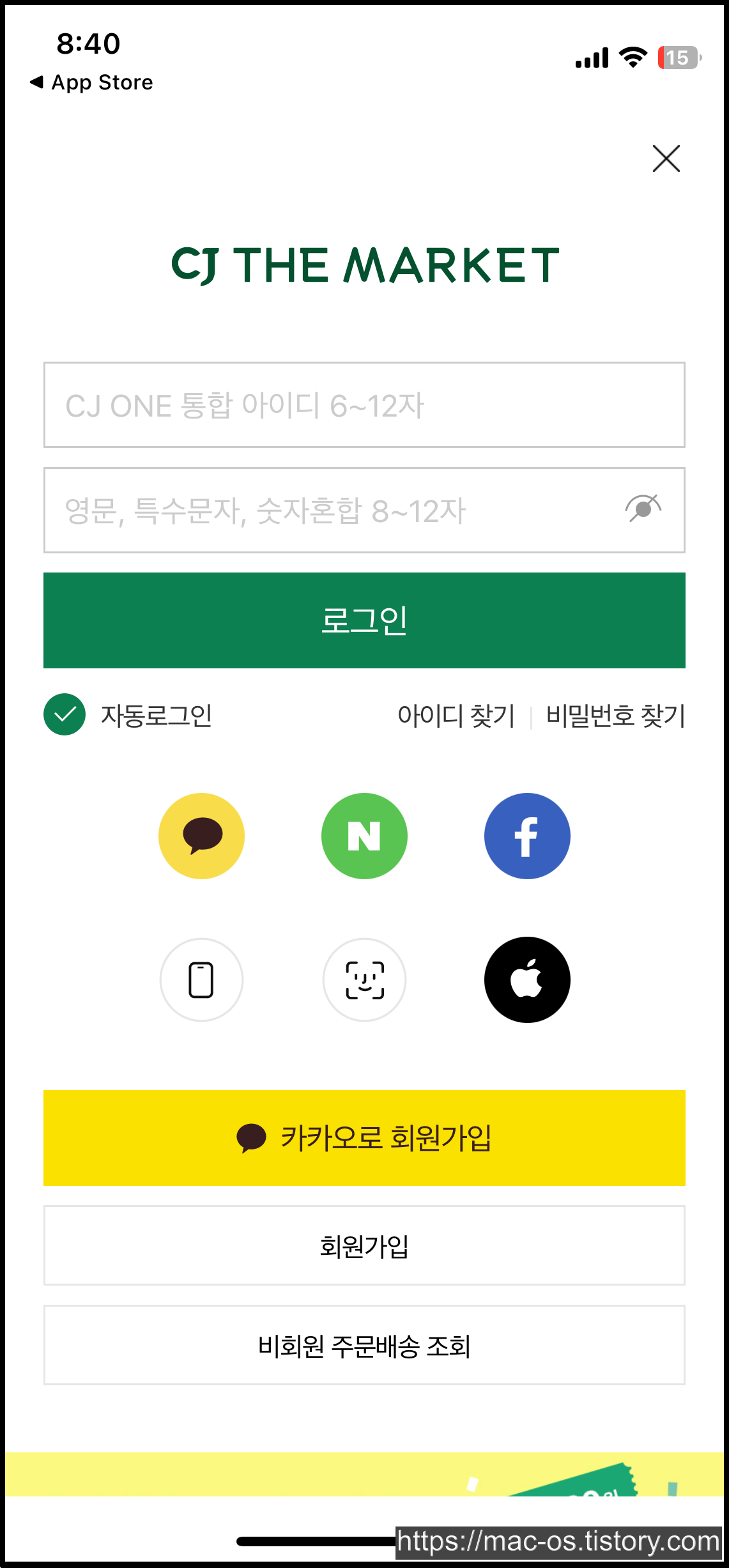 CJ더마켓 앱은 앱스토어에서 설치하고 실행 ㄱㄱ