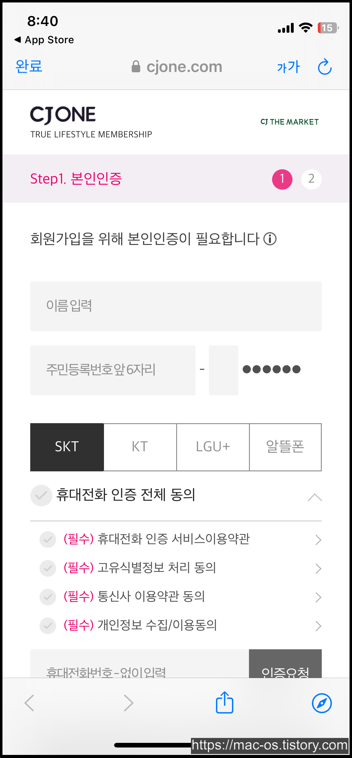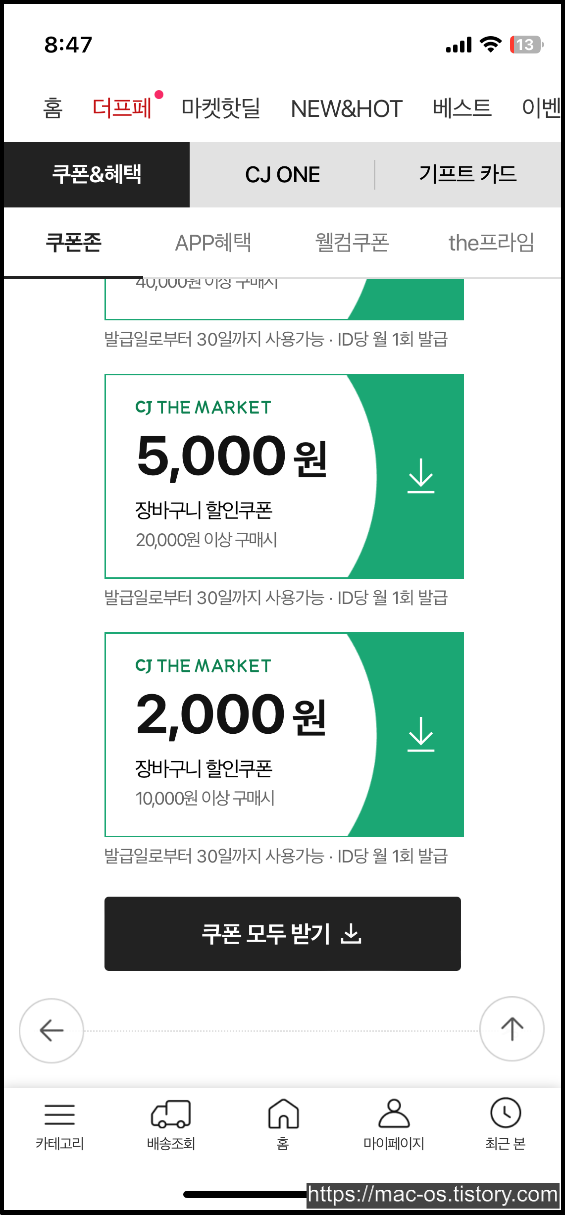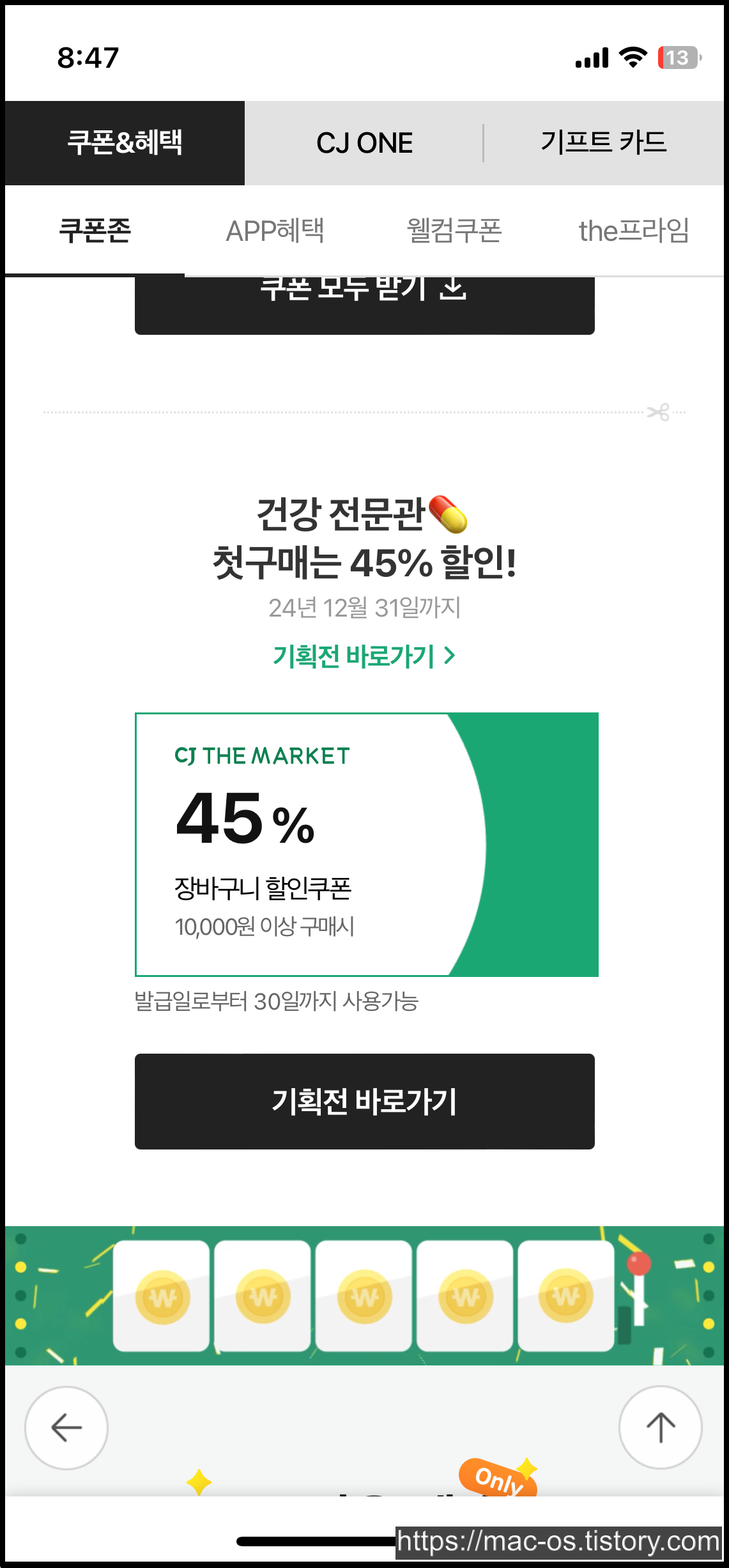 CJ더마켓 앱은 앱스토어에서 설치하고 실행 ㄱㄱ
