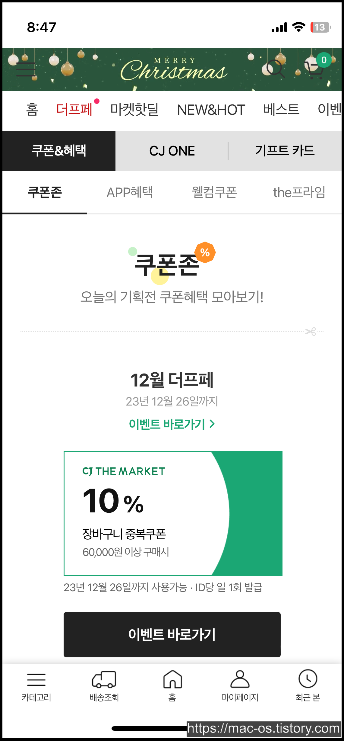 안녕하세요. 오늘은 CJ더마켓이라는 앱에 대해서