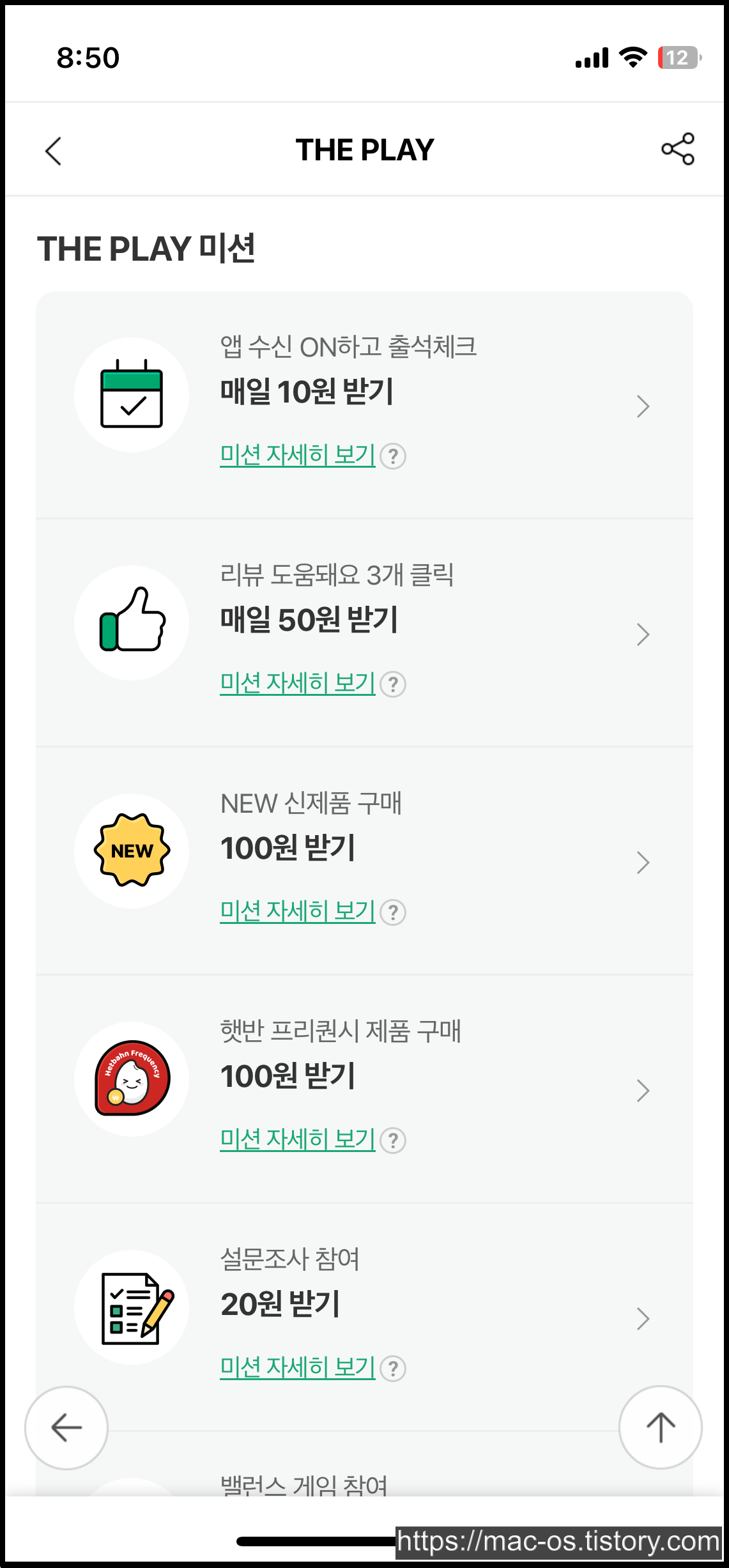 그리고 출석체크나 댓글 좋아요 하기 미션을 하면