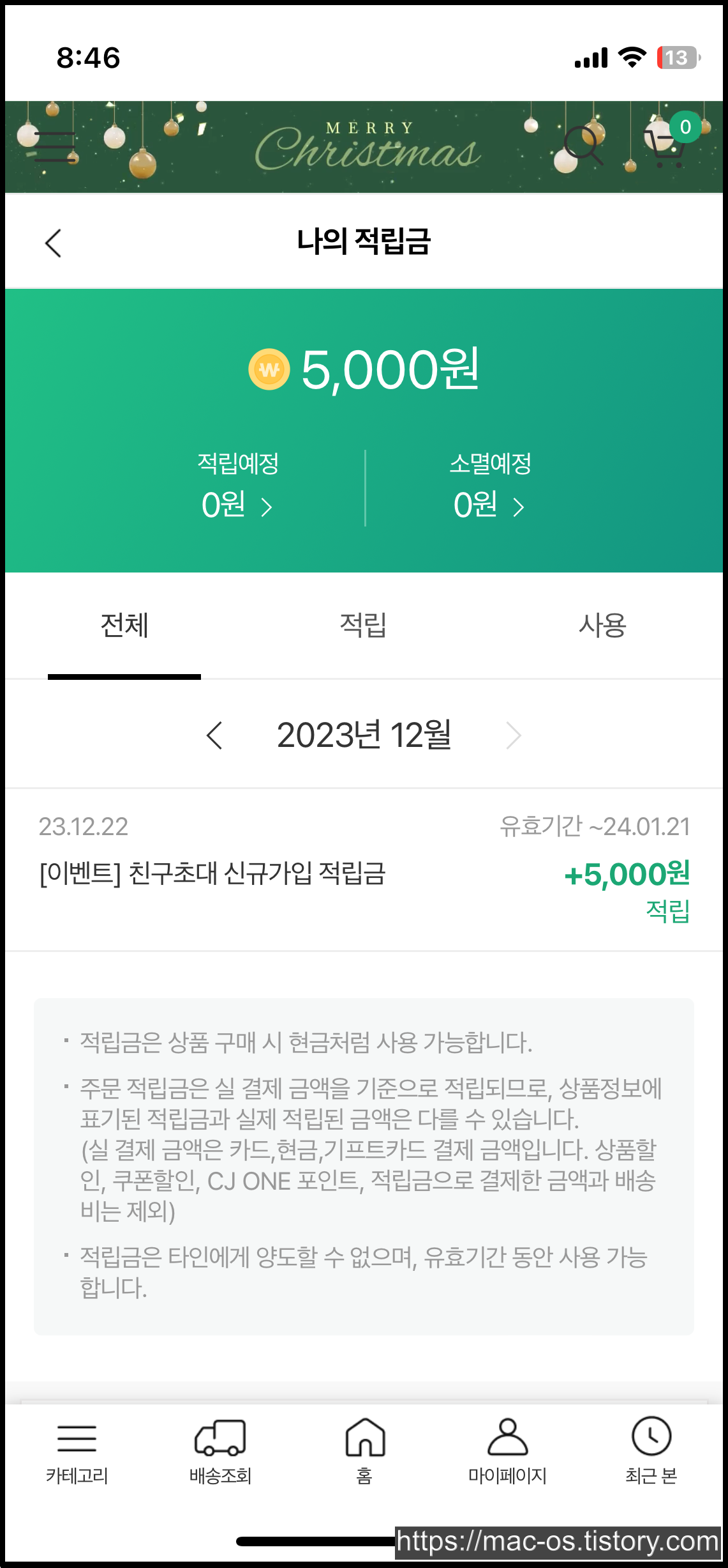 하루에 60원, 한달에 5천원정도 적립금이 벌려요.