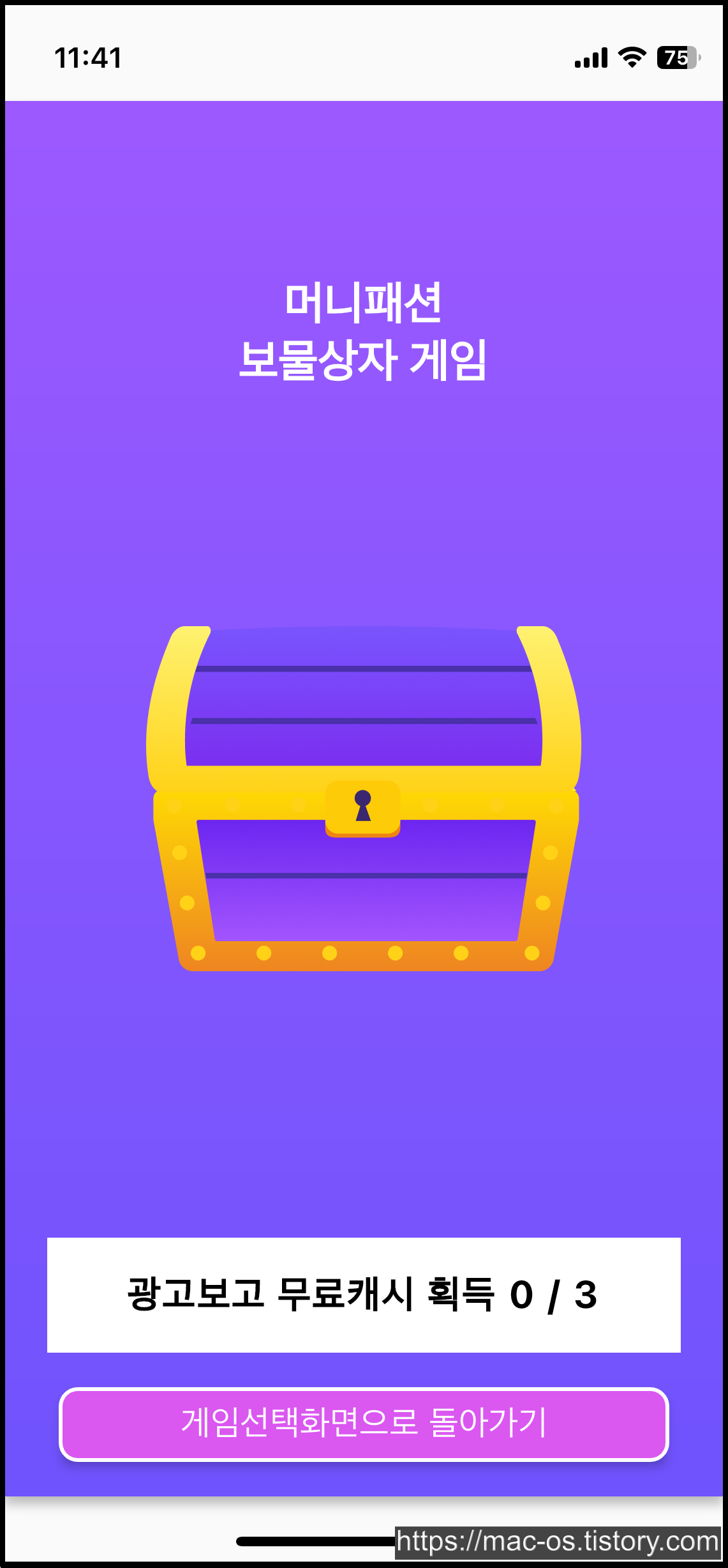 머니패션 보물상자 게임