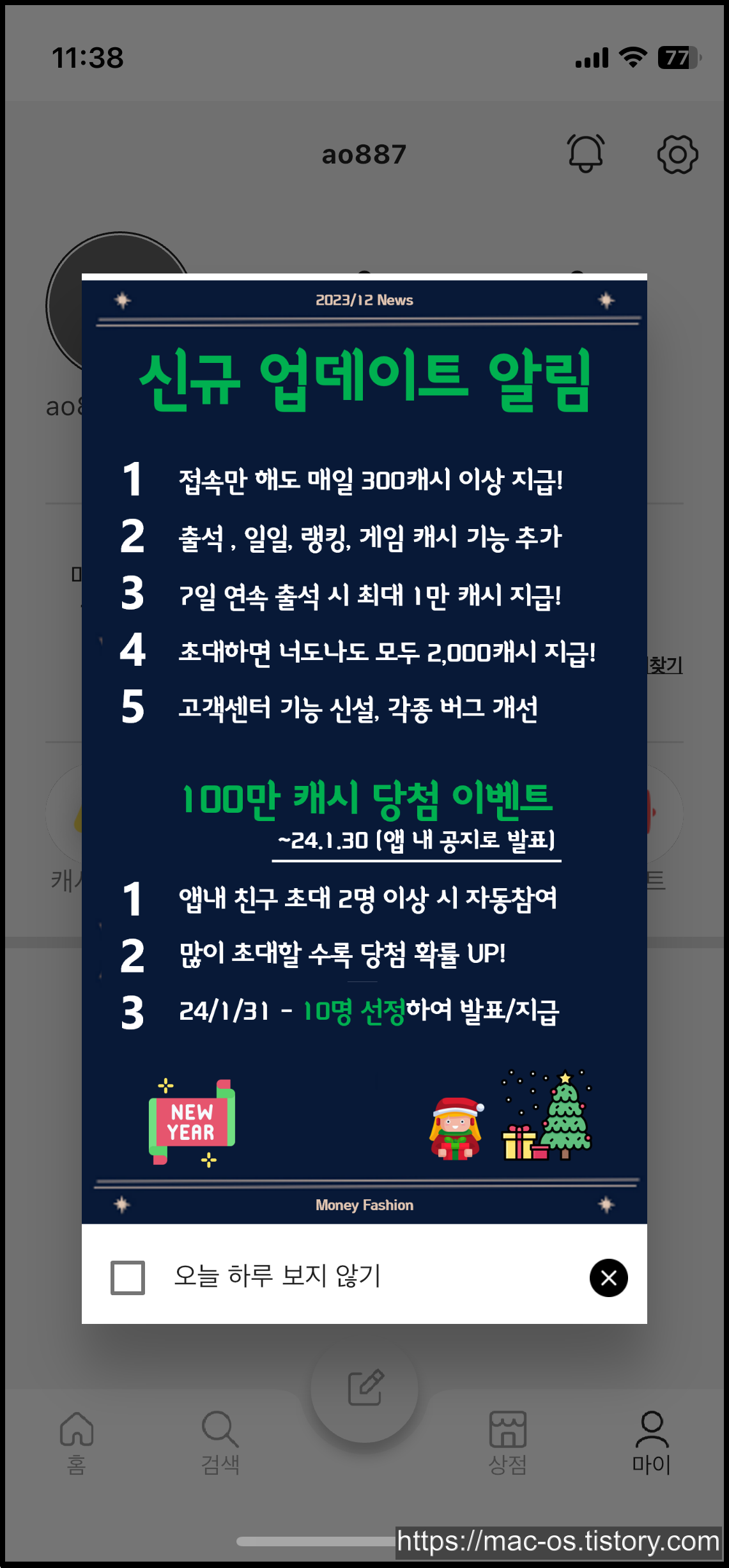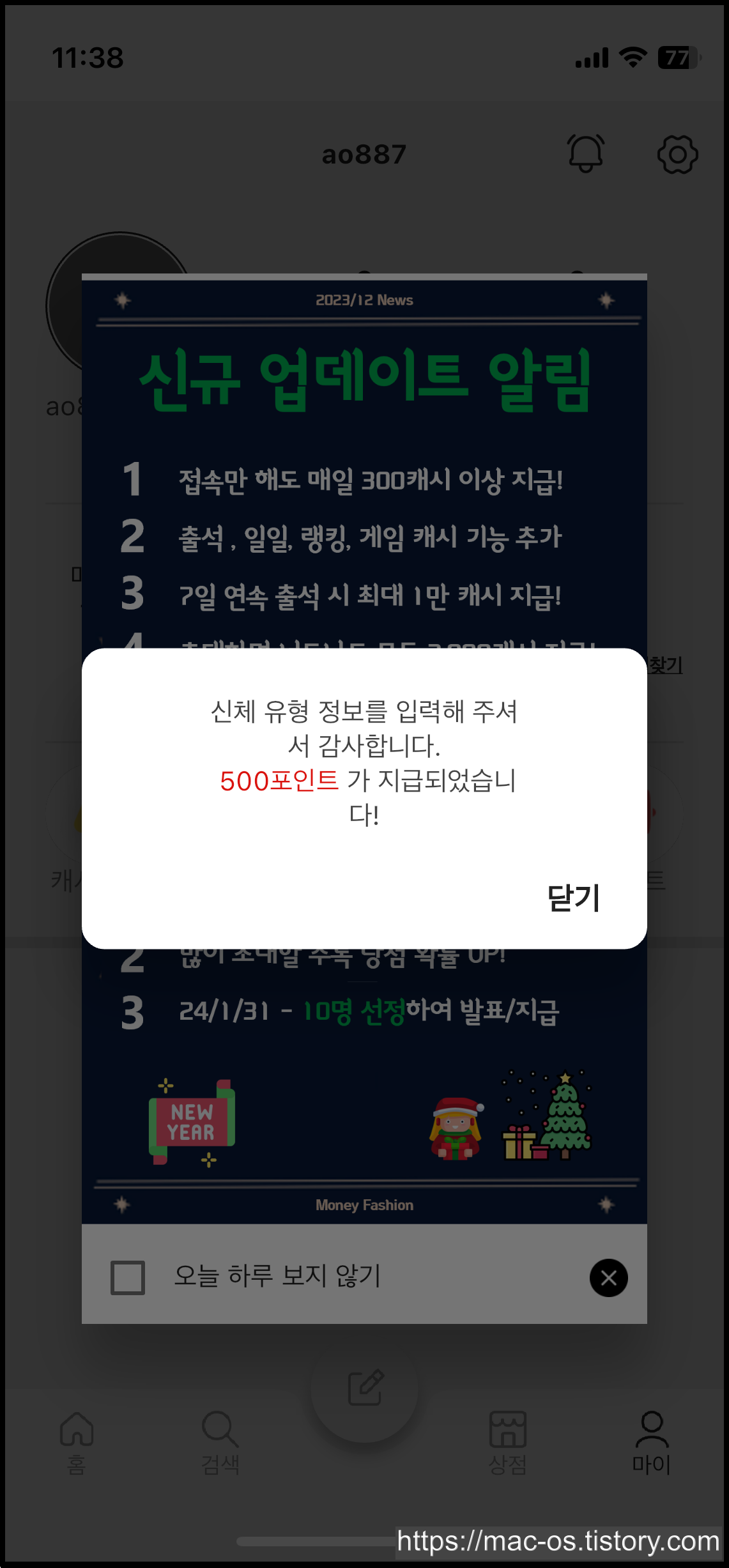 오늘의미션 추천인 ao887 여러 미션을 수행하고 포인트를 얻어보자! (2) | 2023.12.30 |