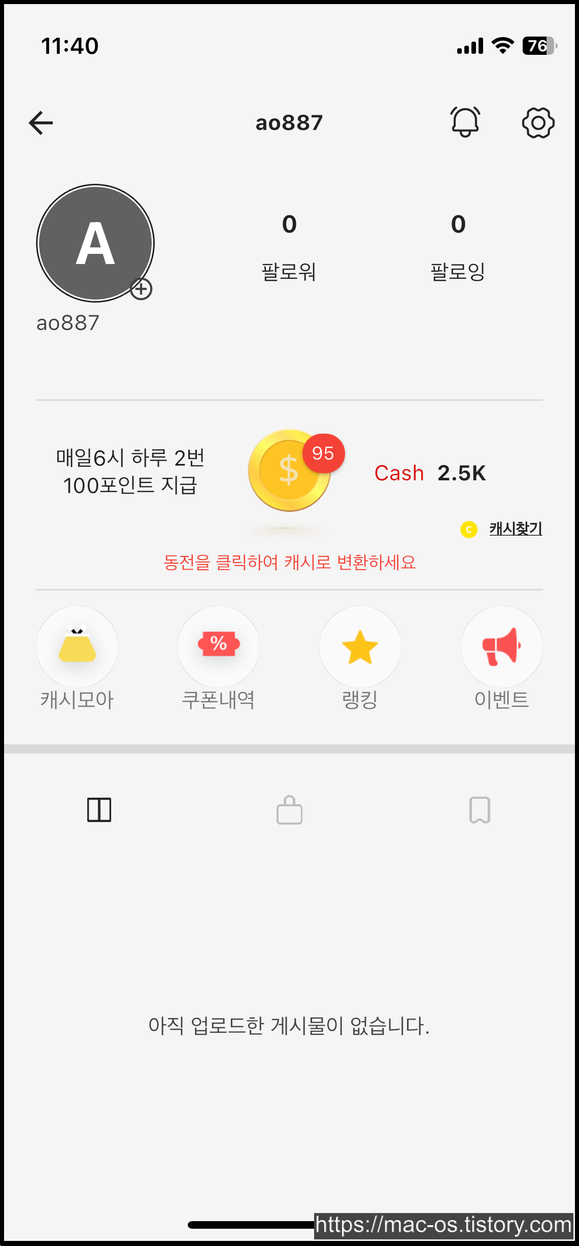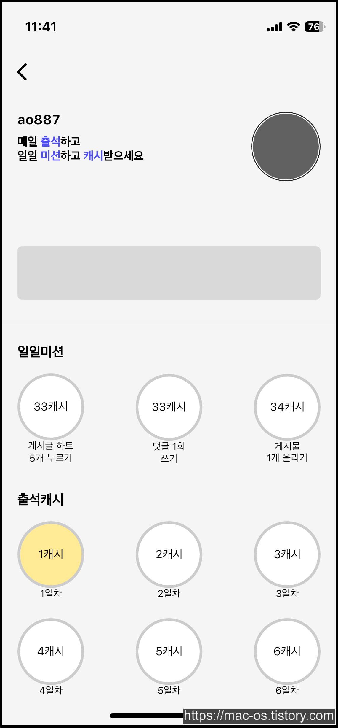 일일미션과 출석캐시로 매일 100캐시 적립하기
