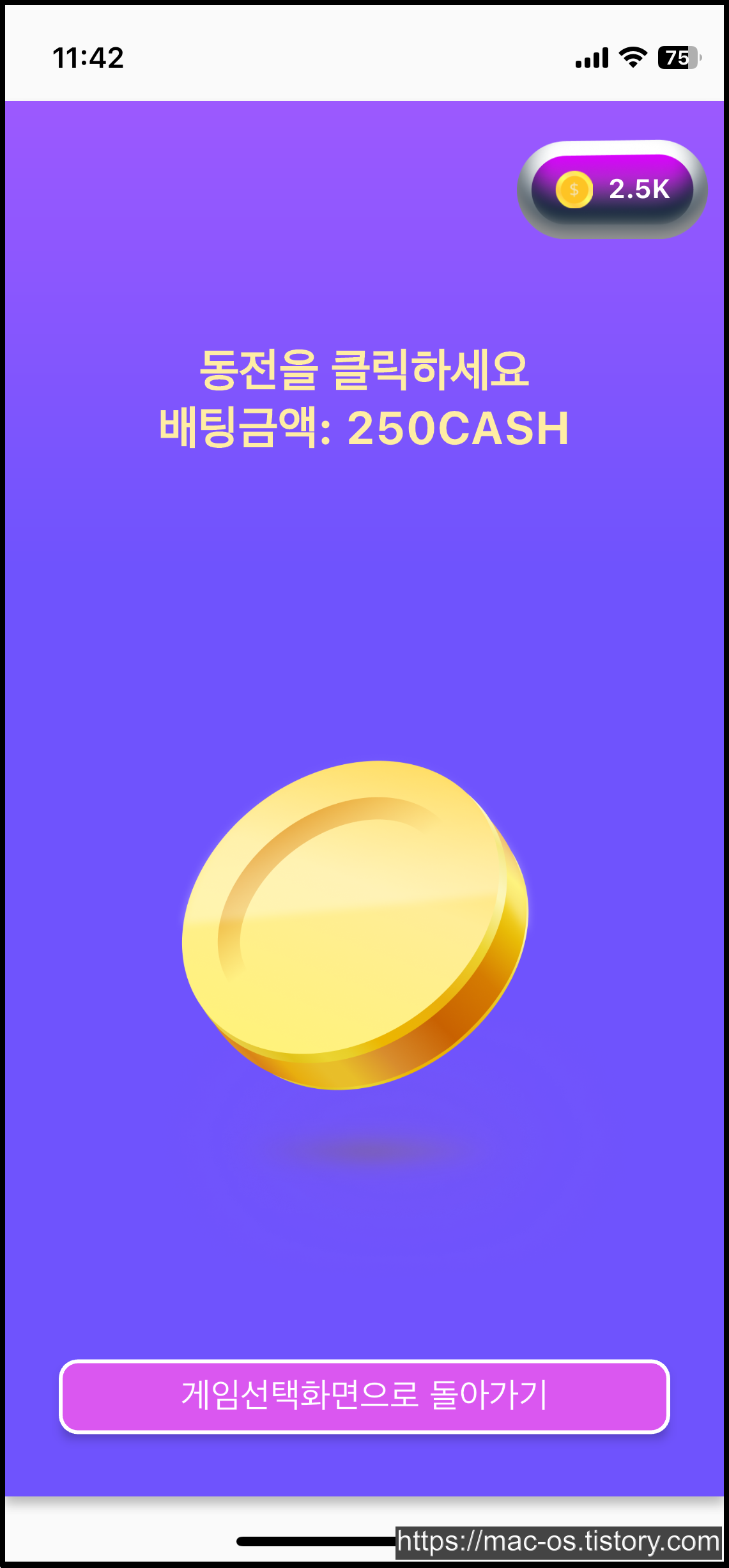 250캐시를 배팅하는 동전 던지기