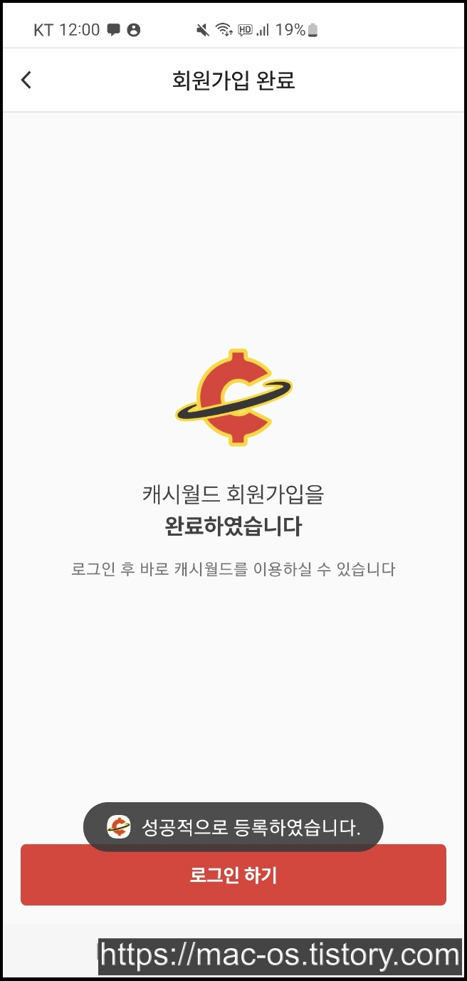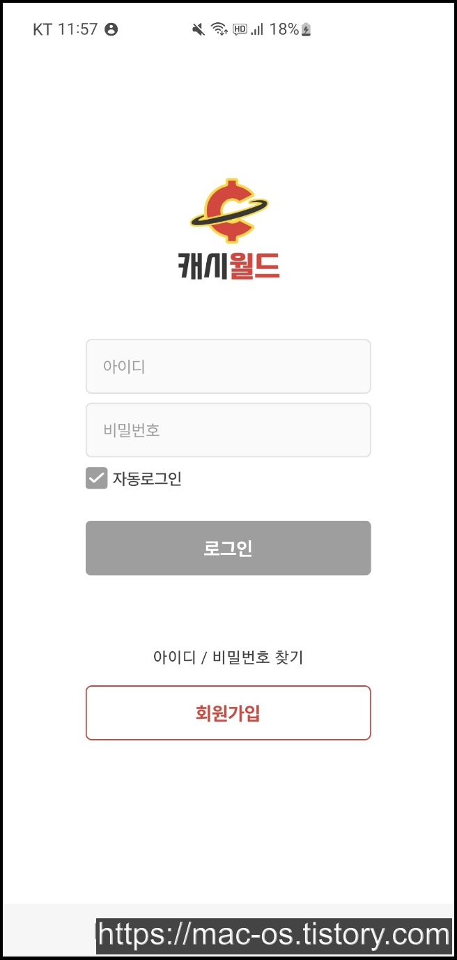 구글 플레이 스토어에서 캐시월드를 설치하고 로그인 페이지에서 회원가입을 해줍니다.