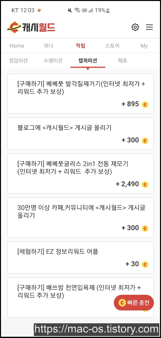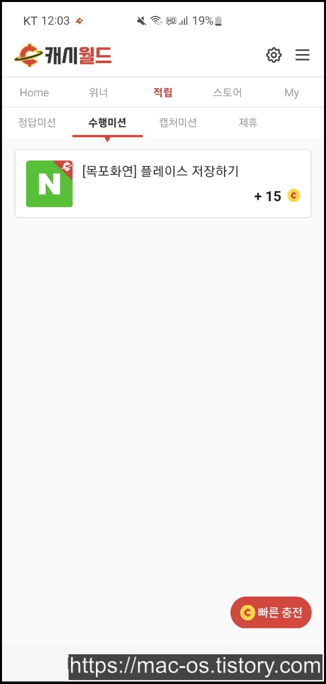 미션을 완료하고 삼성 인터넷의 공유 기능으로 캐시월드를 누르면 되는 공유미션, 네이버 플레이스 저장하기를 하면 되는 수행미션, 캐시월드 홍보 글을 올리고 캡처한 사진을 제출하면 되는 캡처미션 등이 있습니다.