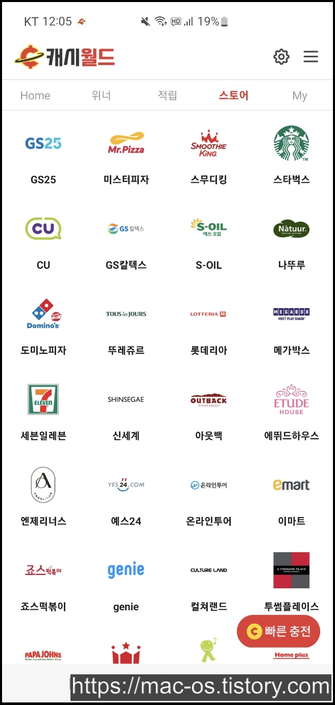 다양한 미션을 완료하면 포인트가 적립되고 이 포인트를 사용해 1:1 비율로 기프티콘을 구매할 수 있는데요. 회원가입 시 캐시월드 추천인을 입력하면 신규회원에게 300원이 지급되니 잊지말고 꼭 입력하시는 것을 추천드립니다.