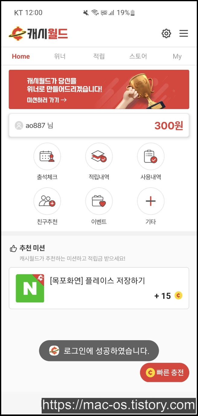 캐시월드 추천인 : ao887@네이버,com