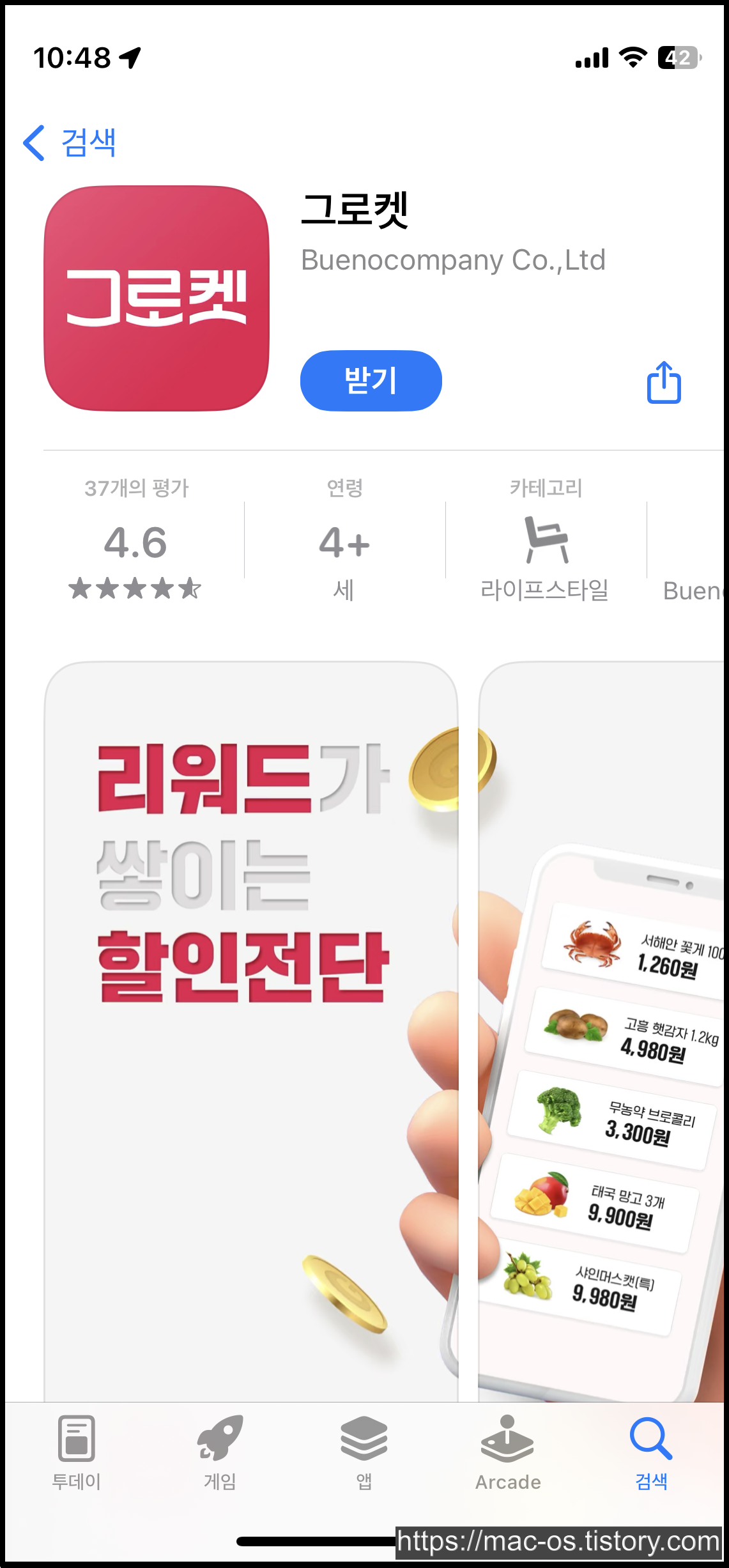 그로켓은 모바일 할인 전단지를 보면 포인트를 적립해주는 어플입니다. 내 주변에 있는 가게를 단골 가게로 설정하여 해당 가게의 전단지를 15초 동안 보면 60포인트를 주는데요. 이 포인트는 1:1 비율로 편의점 금액권이나 스타벅스 아메리카노 등 기프티콘으로 교환하는데 사용이 가능합니다.