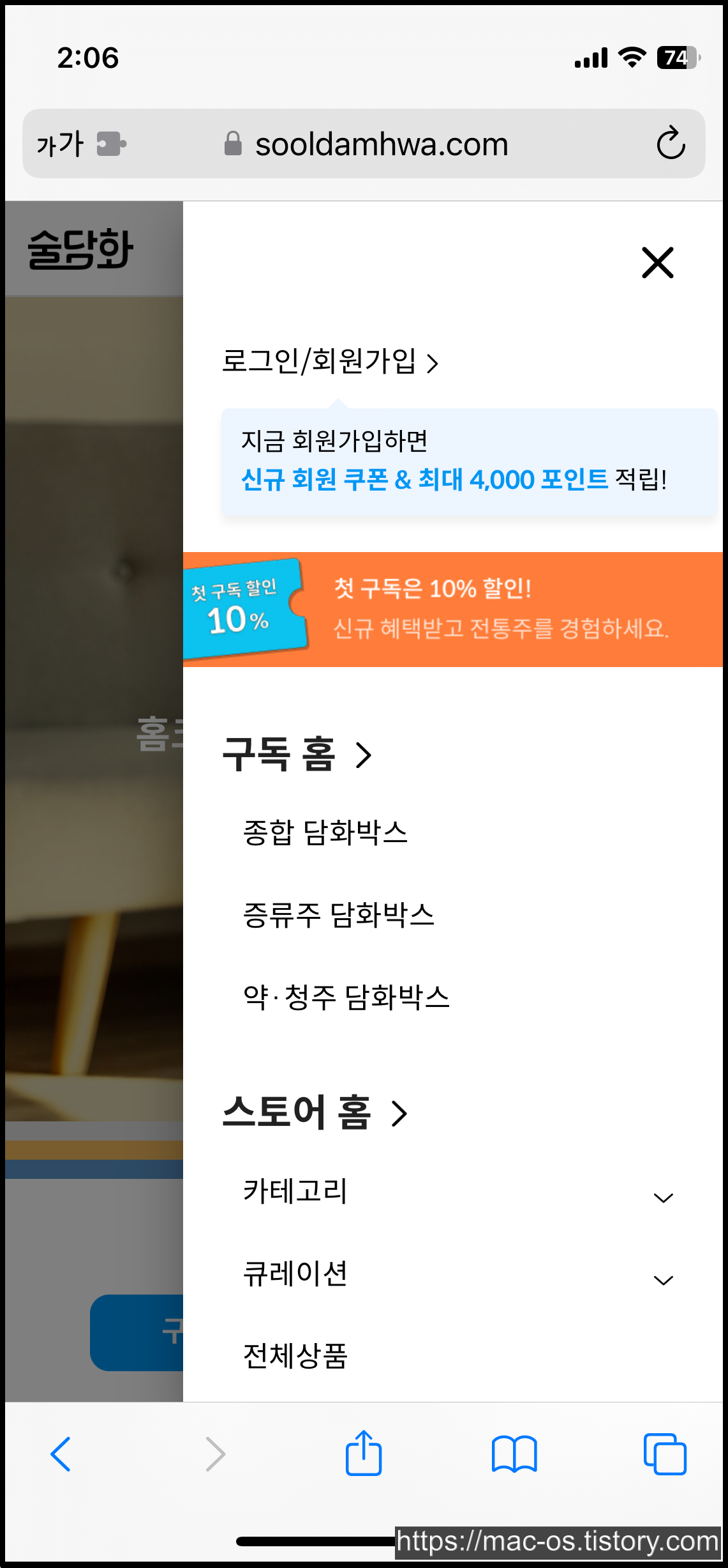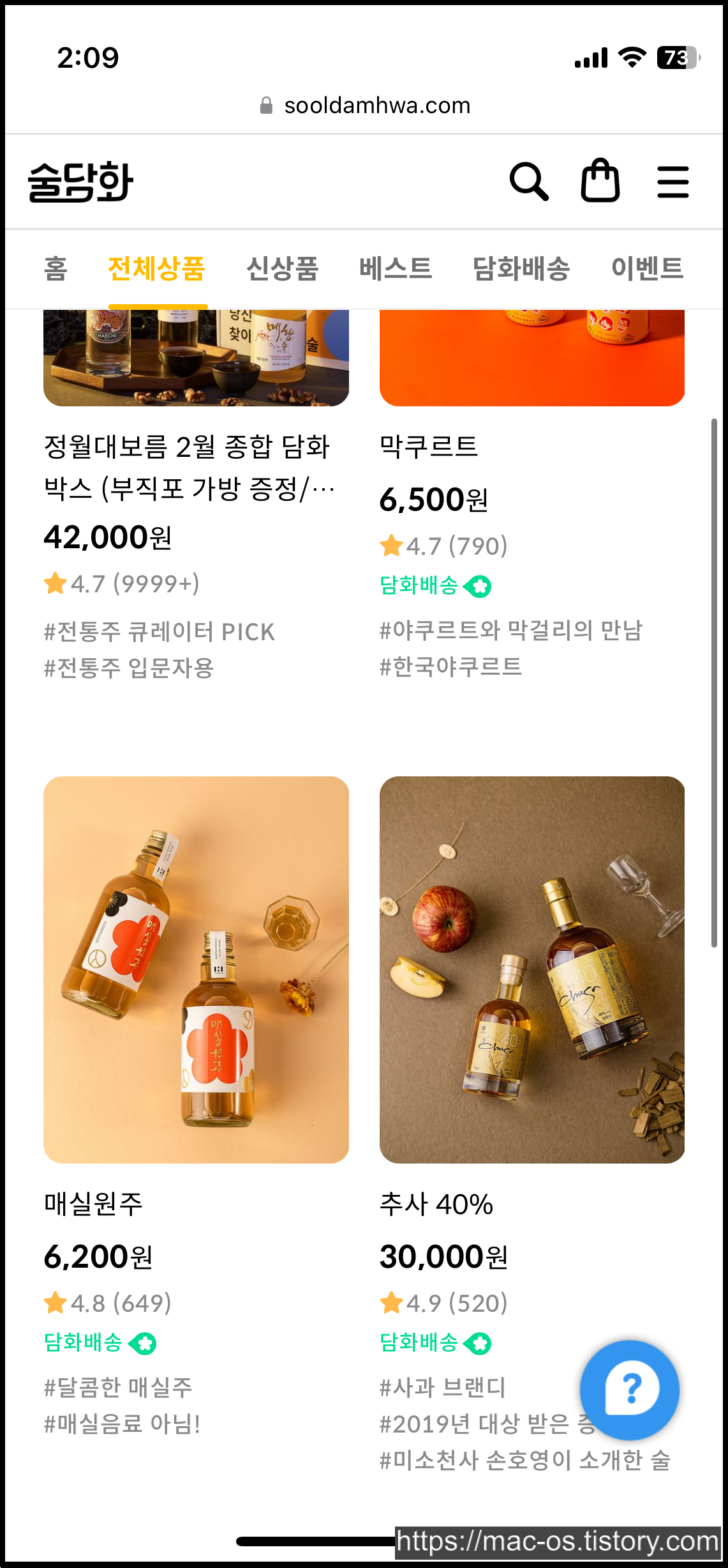 술담화는 딱히 앱테크나 이런 것이 없고, 여러 종류의 술을 판매하는 사이트라고 보면 된다.