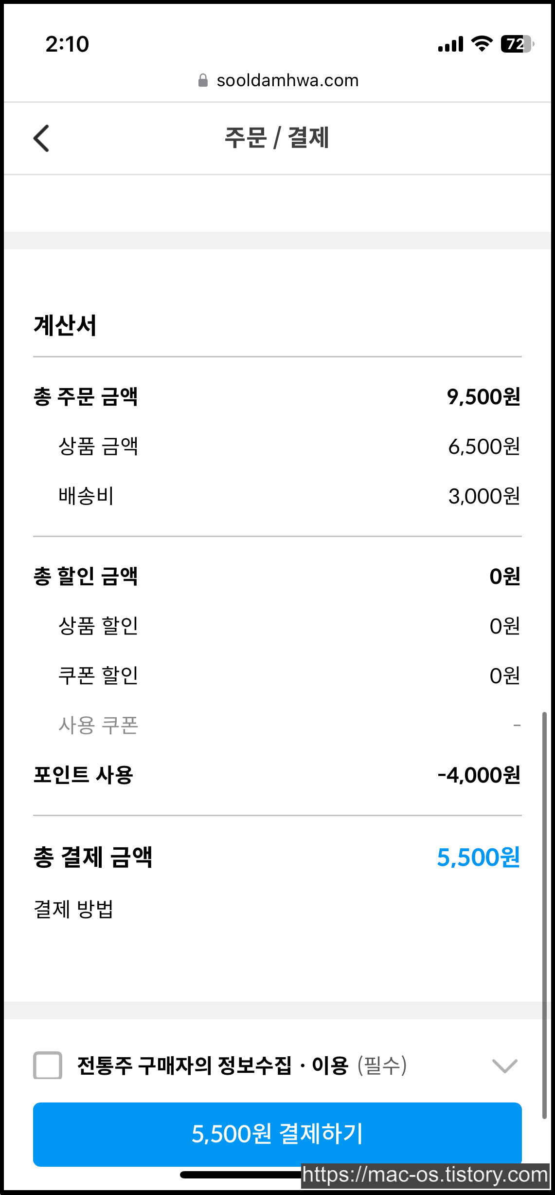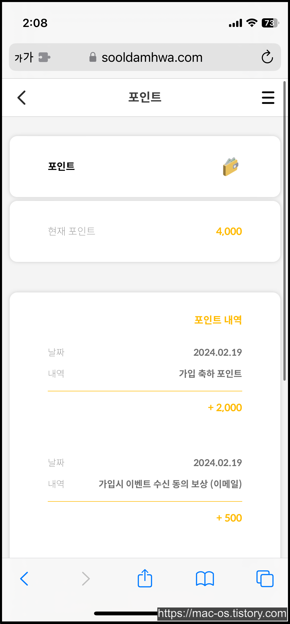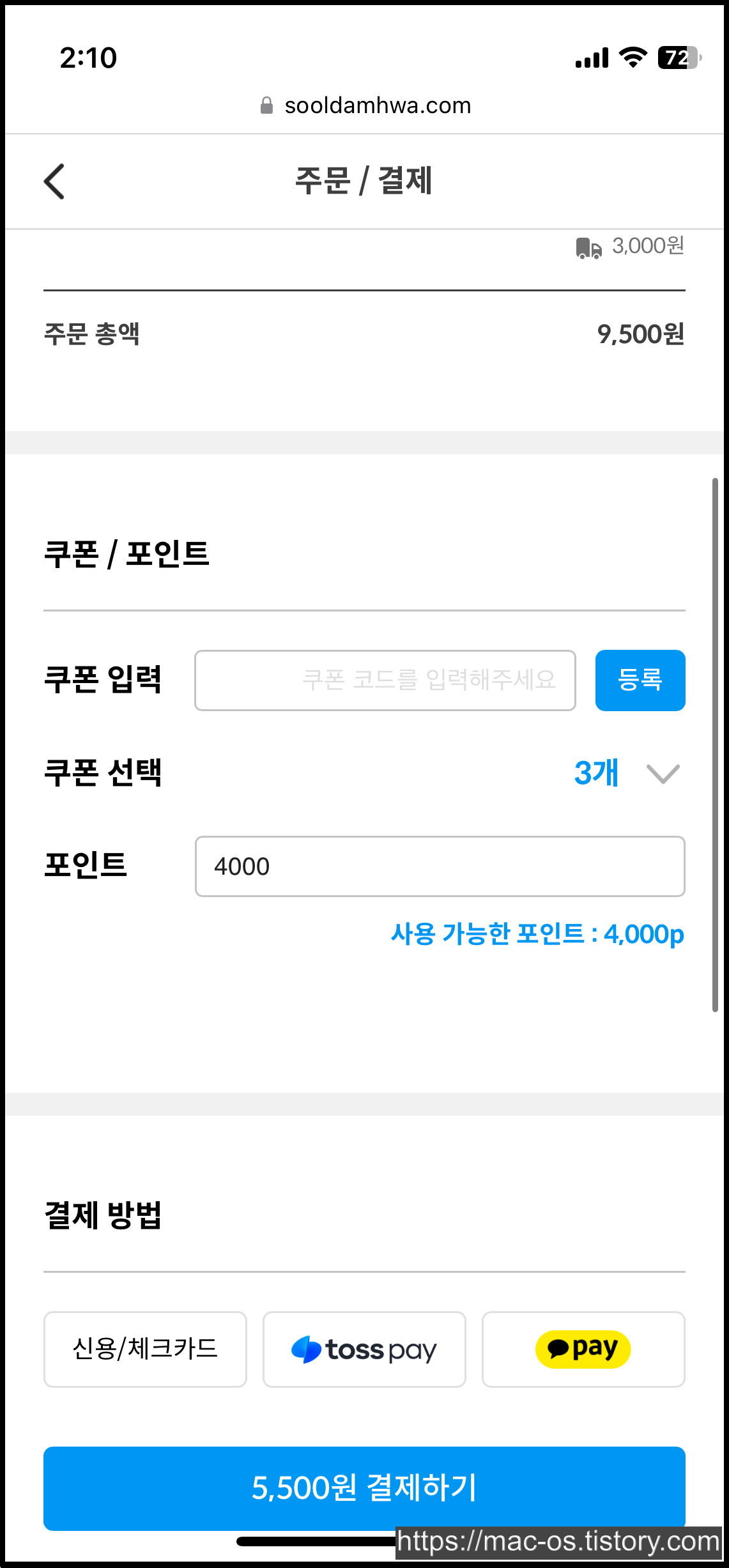 가입하고 받은 4000원은 결제 페이지에서 현금처럼 사용이 가능하며 포인트만으로 전액 결제가 가능해보인다.