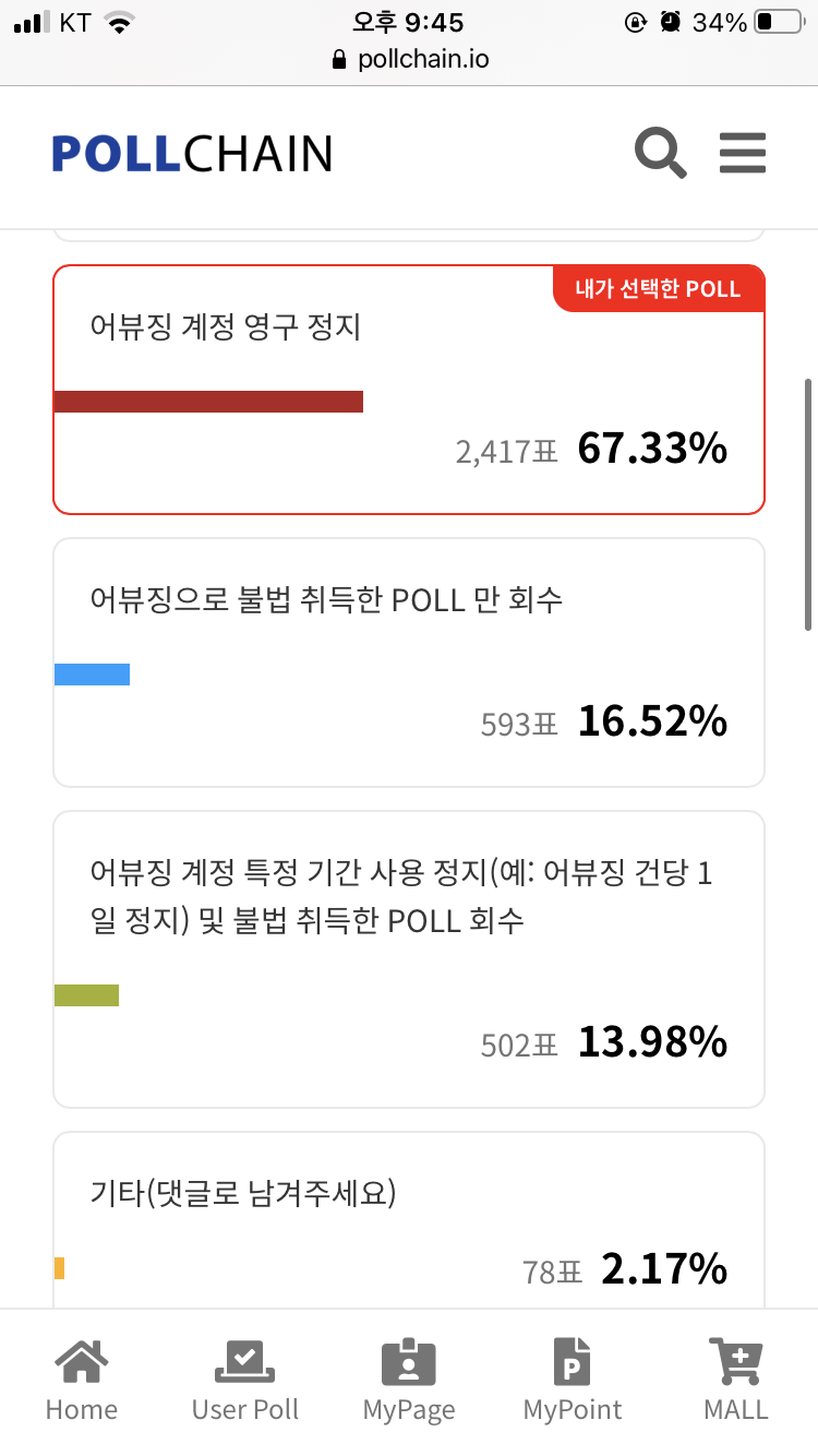 Pollchain 홈페이지에서 간단한 객관식 설문 문제들에 참여하시면 2POLL을 얻으실 수 있습니다.
