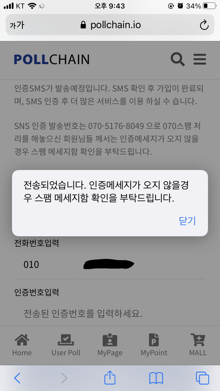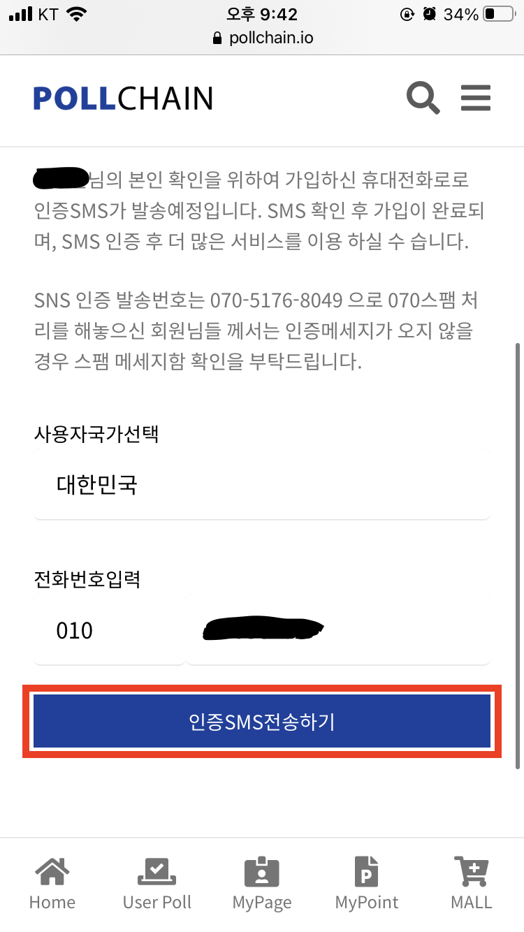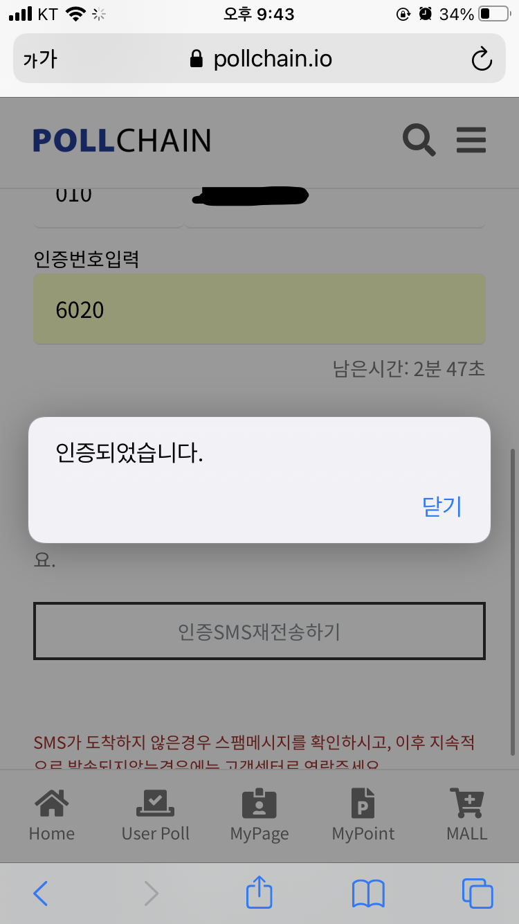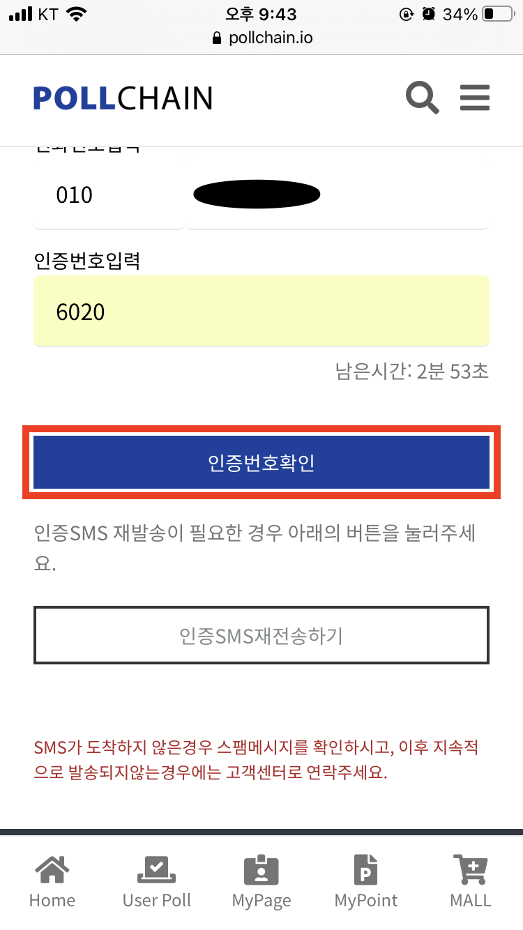 아까 가입하셨던 이메일로 로그인해주신 다음, SMS 인증을 진행해주세요.