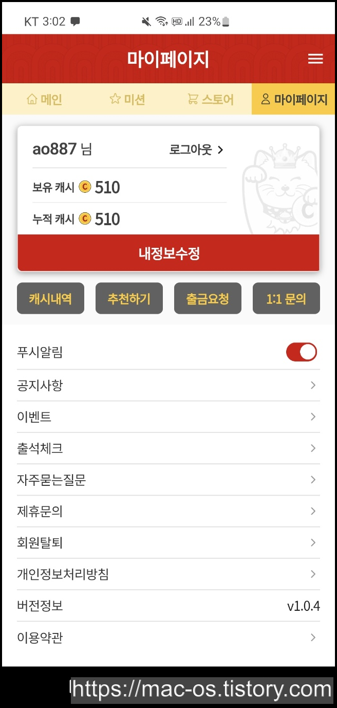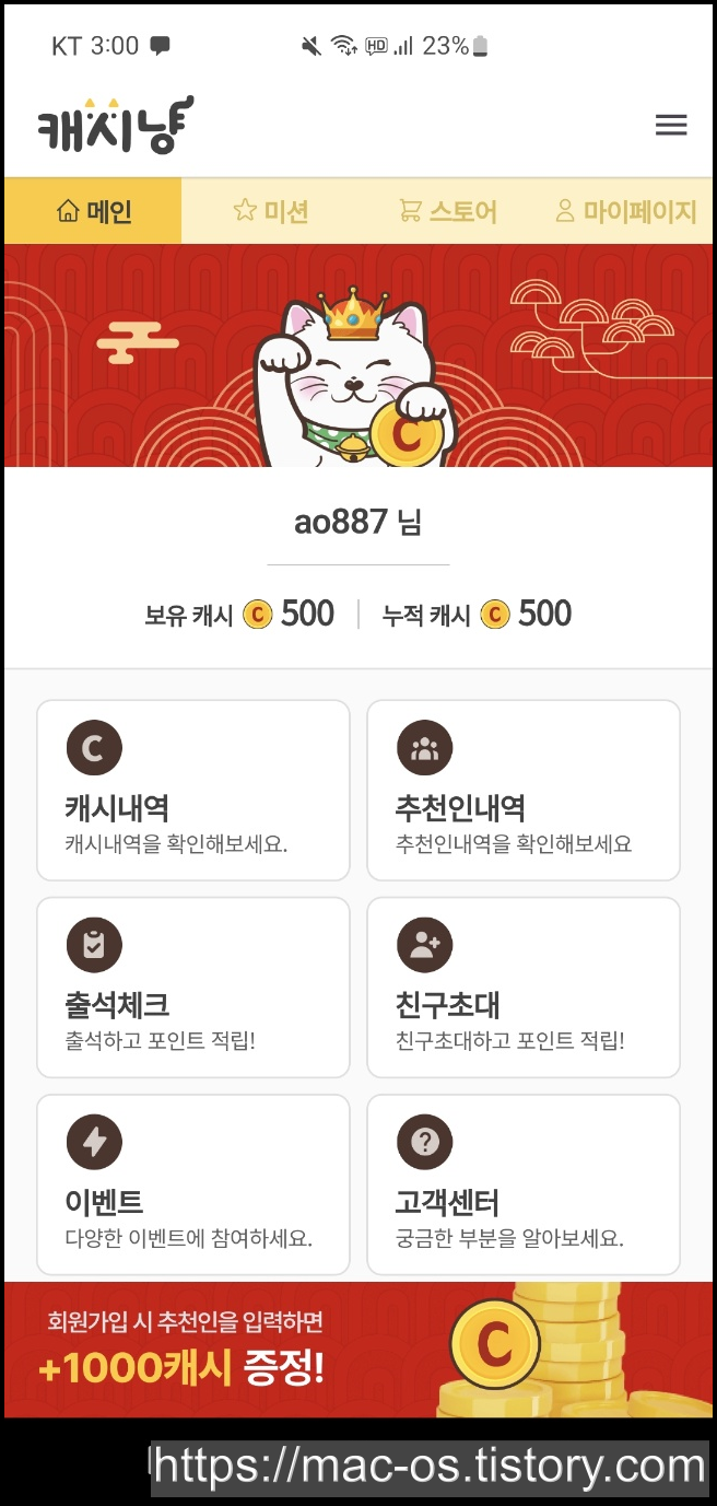캐시냥 추천인 : ao887 (복사 가능)