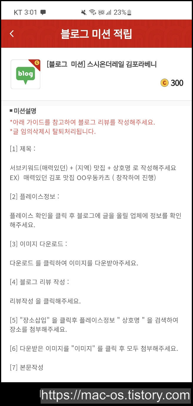 블로그 미션은 정해진 가이드를 참고하여 블로그 리뷰를 작성하는 미션입니다. 글을 임의로 삭제할 경우 탈퇴처리된다고 하니 주의하세요.