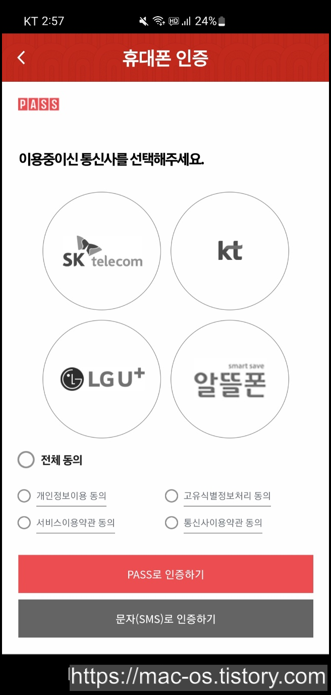 이용약관에 동의하고 PASS 본인인증을 진행합니다.