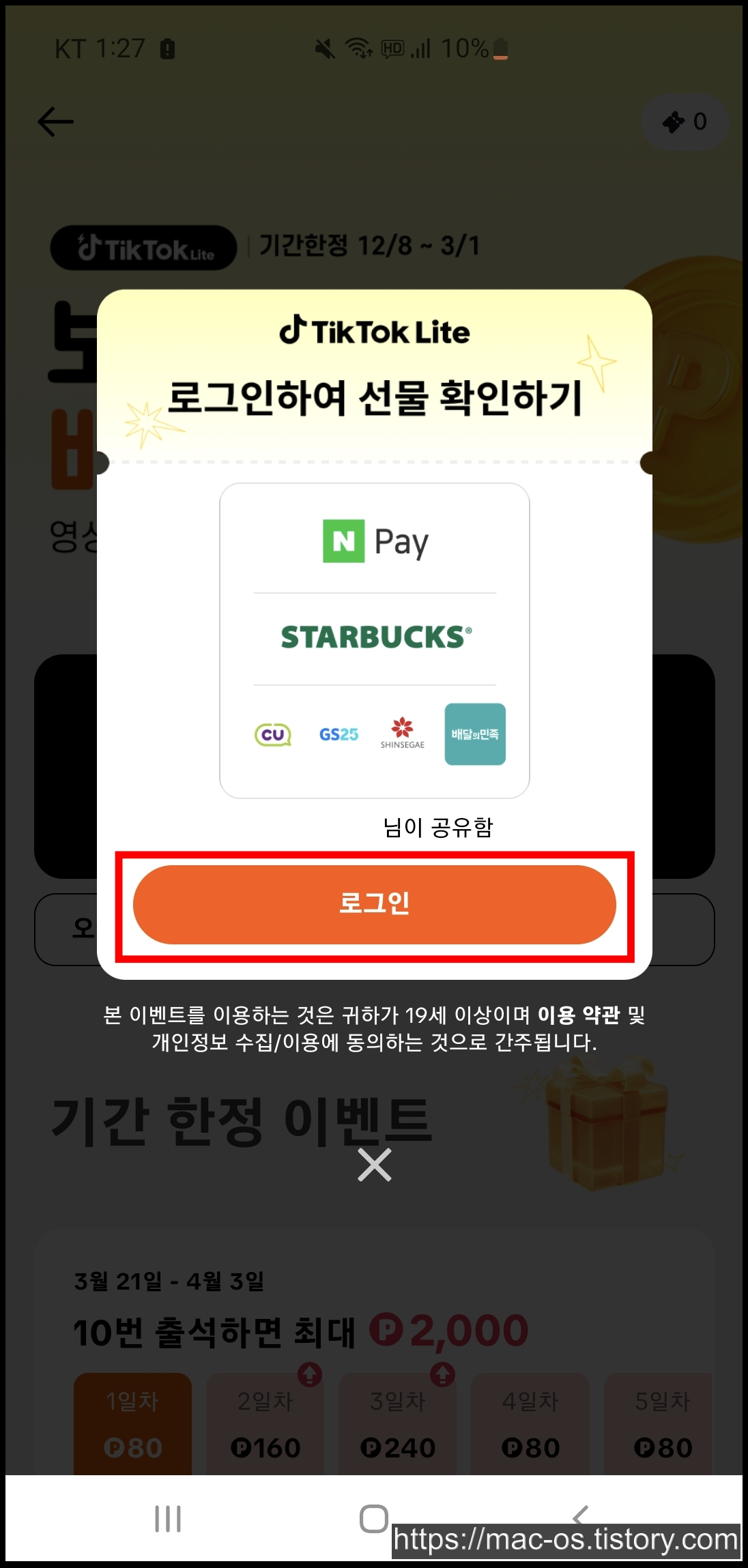 틱톡라이트에서 친구초대 이벤트를 진행하고 있는데