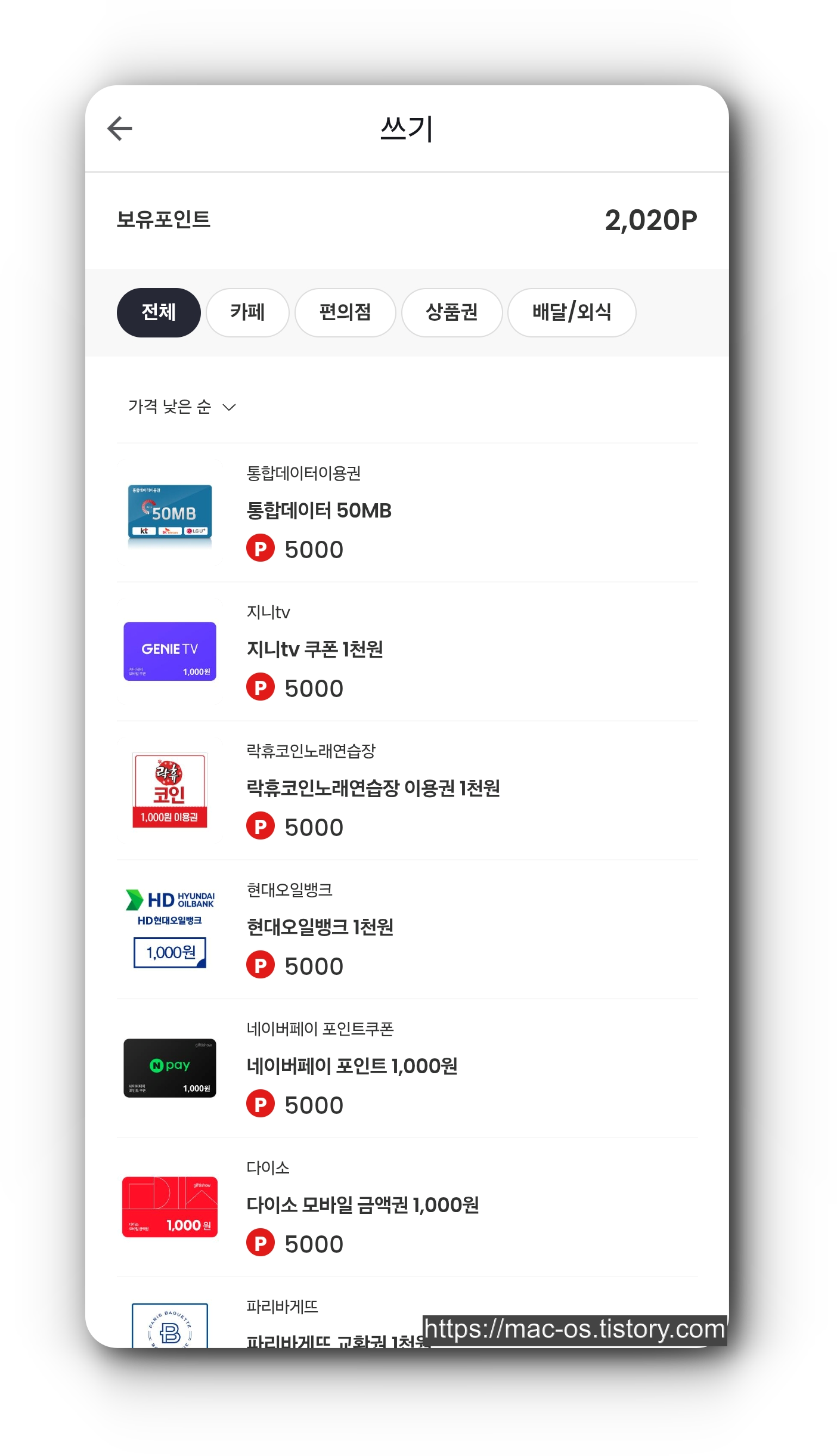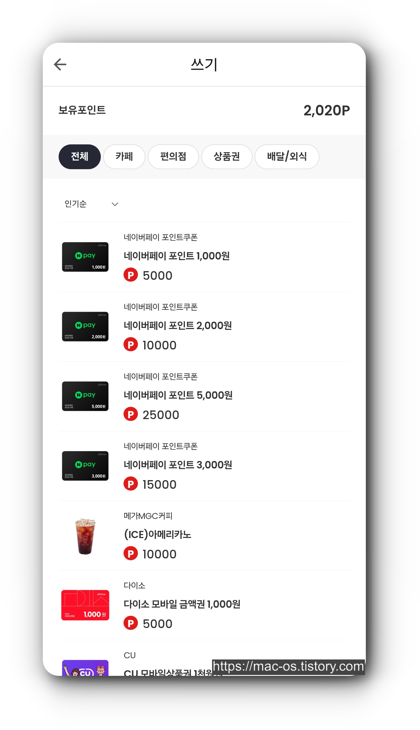 3. 적립한 포인트는 기프티콘, 상품권 등을 구매하는 데 사용할 수 있고, 포인트와 현금 비율은 5:1이다.