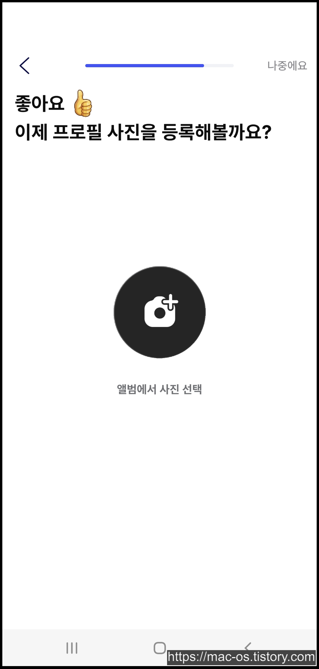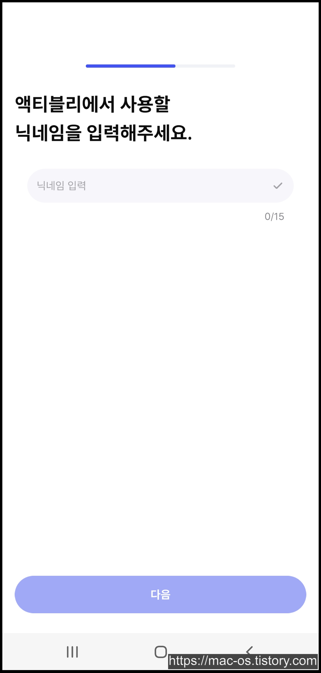 휴대폰 번호로 온 문자 메시지 인증번호 6자리를 입력합니다. 그리고 닉네임과 프로필 사진을 등록하면 회원가입이 완료됩니다.