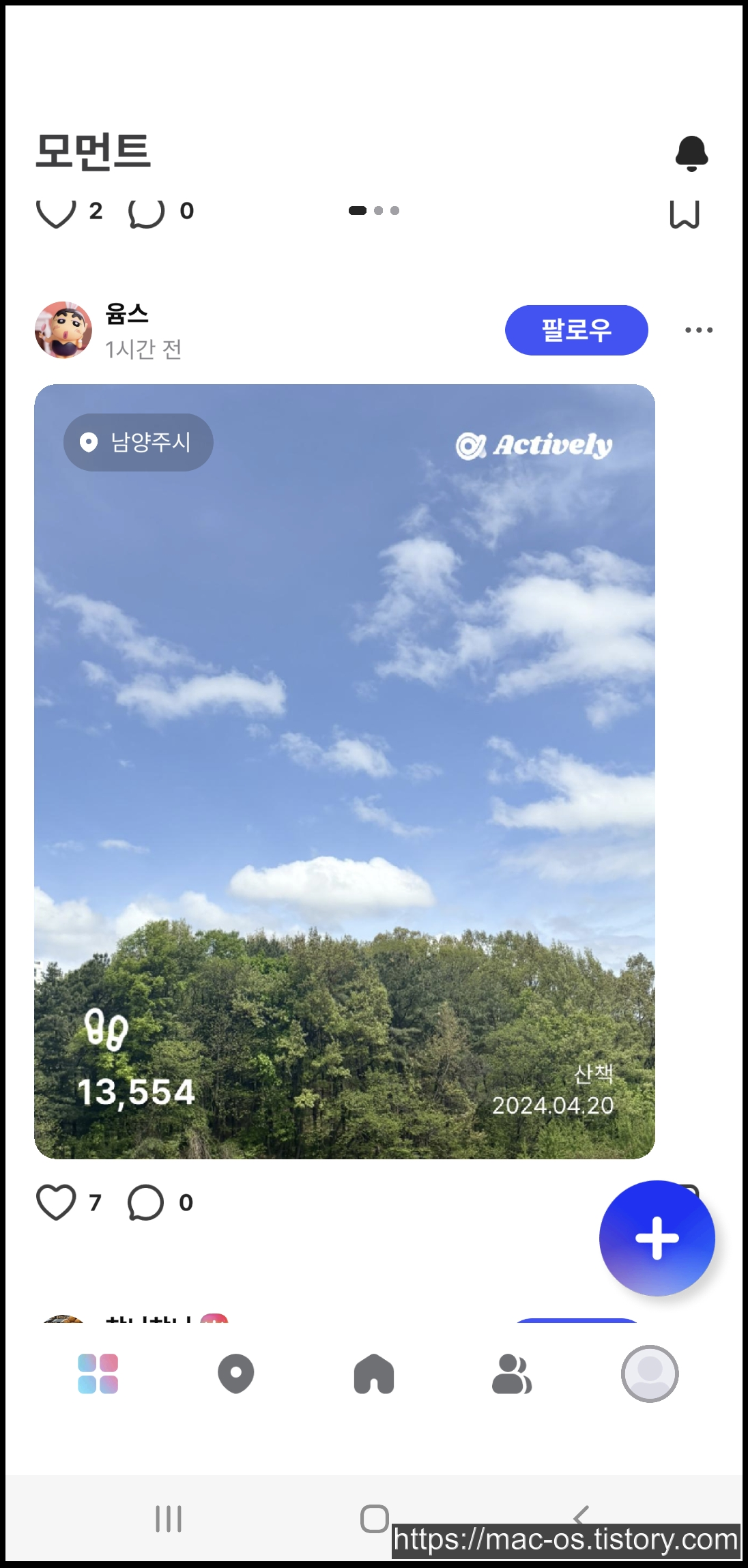 모먼트는 인스타그램 피드처럼 사진을 올리고, 다른 사람이 내가 올린 사진에 좋아요를 눌러주면 좋아요 개수에 따라 별가루를 얻을 수 있습니다.