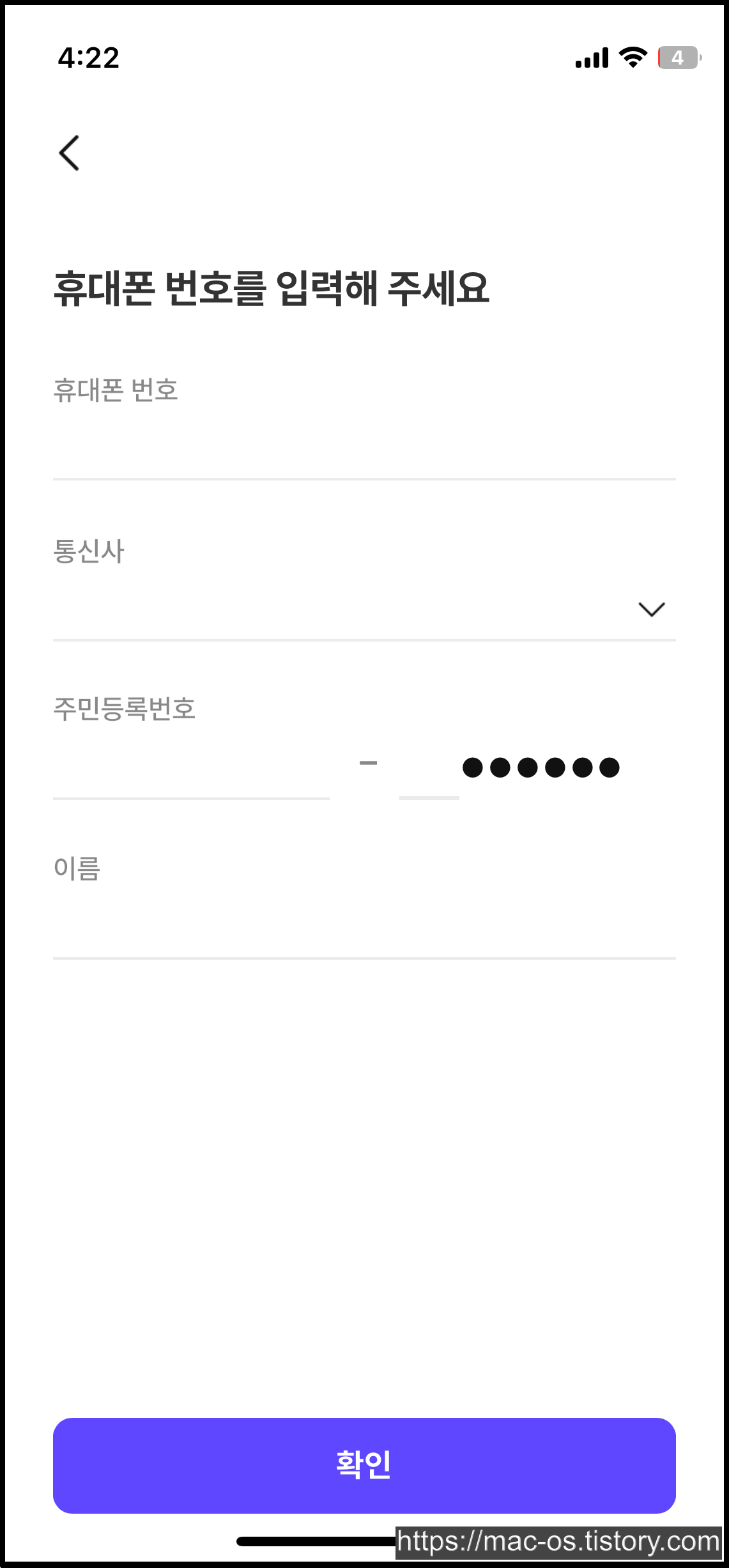이름, 주민등록번호 앞자리, 통신사, 휴대폰 번호를 입력해줍니다.