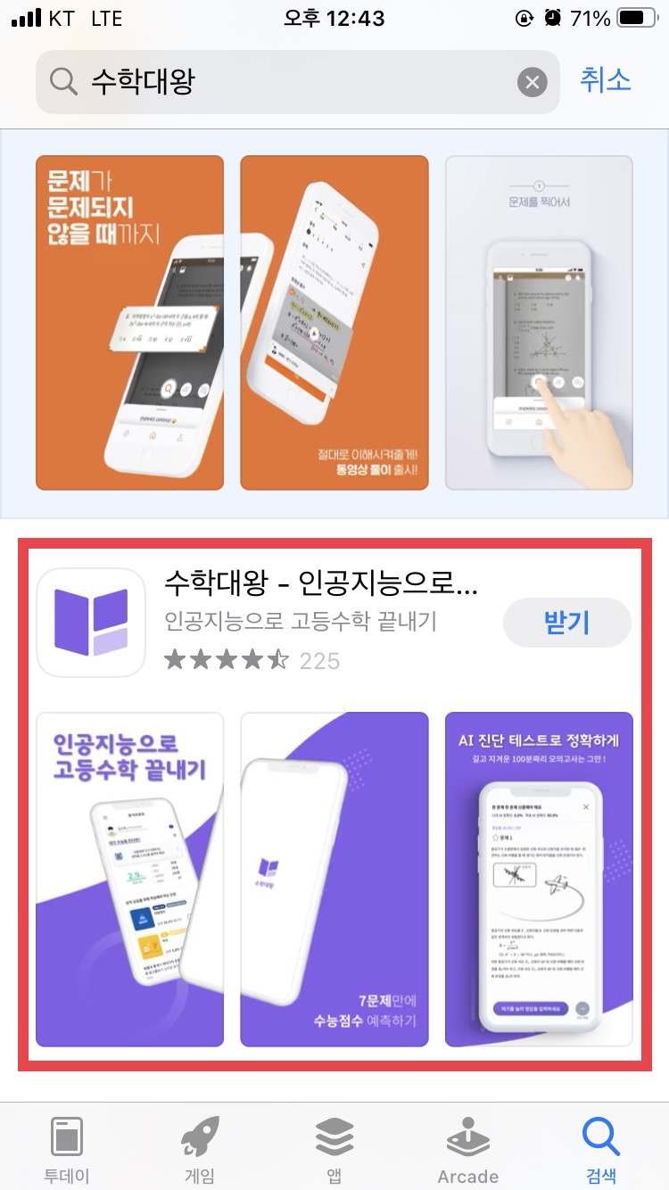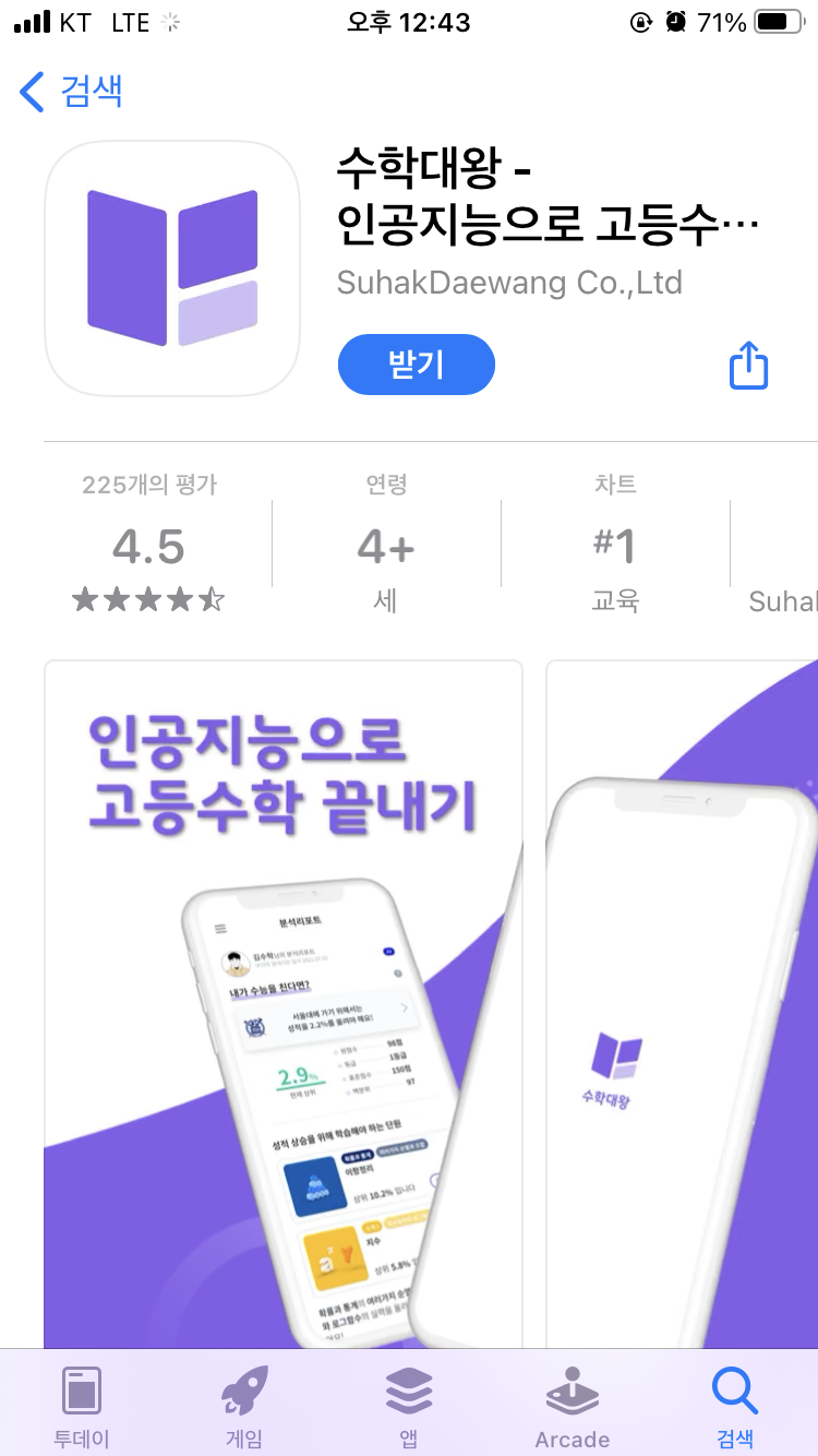 앱스토어에서 수학대왕을 검색해서 앱을 설치하실 수 있어요.