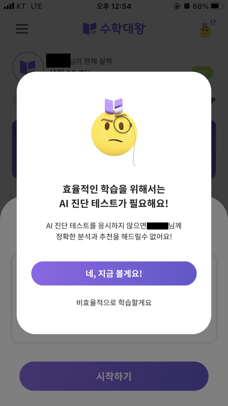 수학대왕은 산타토익처럼 인공지능으로 자신의 수준에 맞는 문제를 선별해주는 어플이에요.
