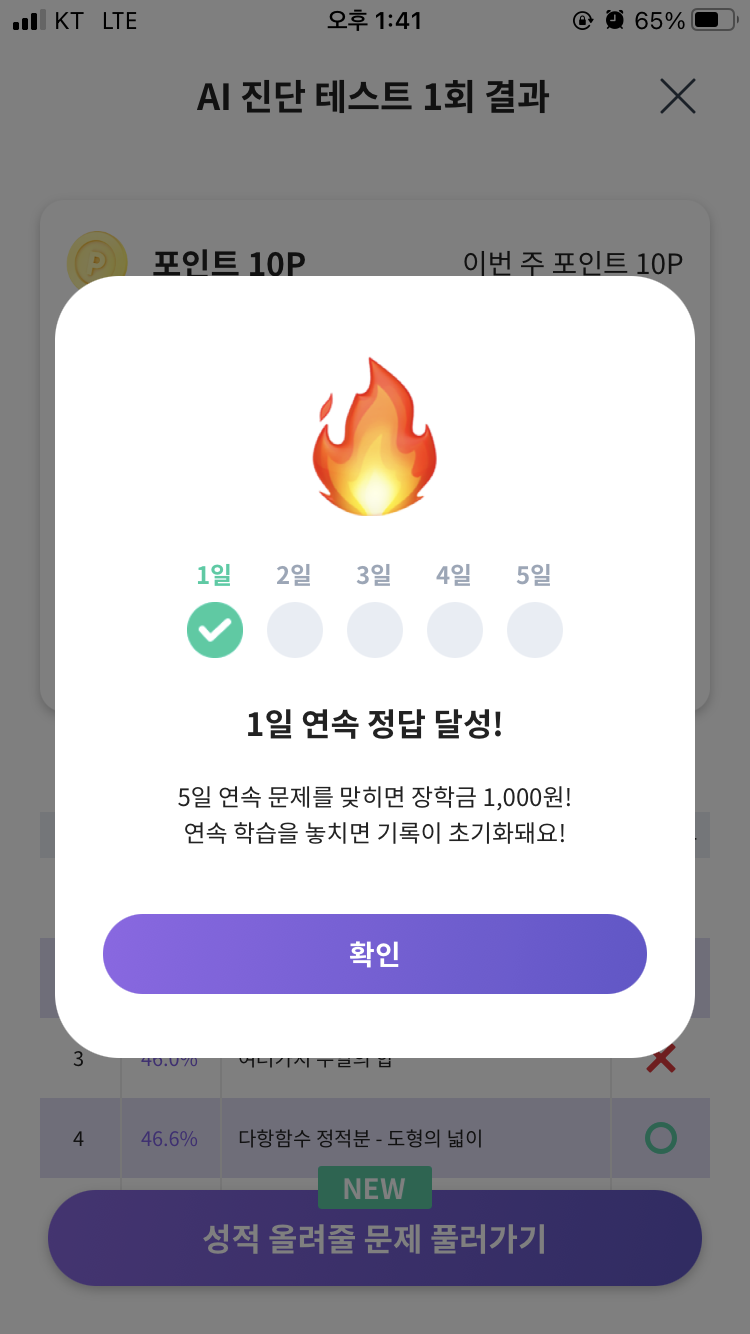수학 문제로 돈을 벌 수 있다는 것도 좋지만, AI 인공지능이 내가 취약한 부분을 선별해서 주니까 학습 효과에 훨씬 효과적일 것 같아요.