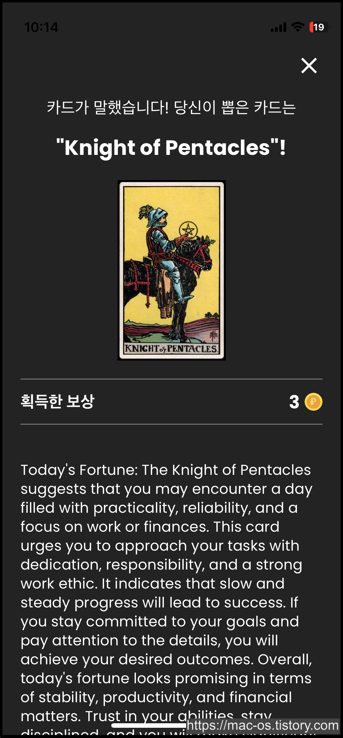 스크롤을 아래로 쭉 내리면 오늘 하루는 어떻게 될 지 타로를 볼 수 있는 배너가 있습니다. 타로 배너를 누르고 카드를 선택하면 30초가 넘는 엄청 긴 광고가 나옵니다. 이 광고를 끝까지 보면 내가 선택한 타로 카드의 운세를 볼 수 있고 3포인트가 적립됩니다.