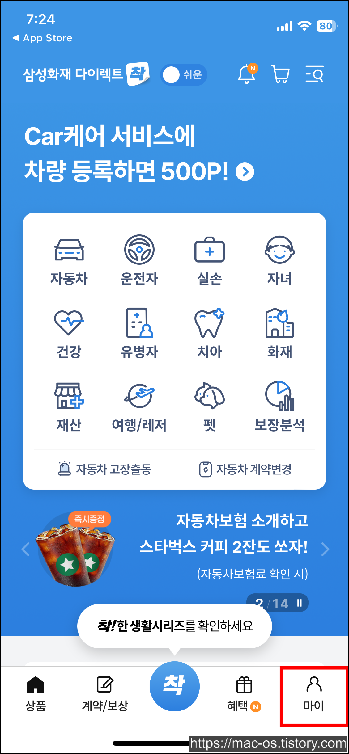 삼성화재에서 만든 다이렉트 착이라는 앱에서