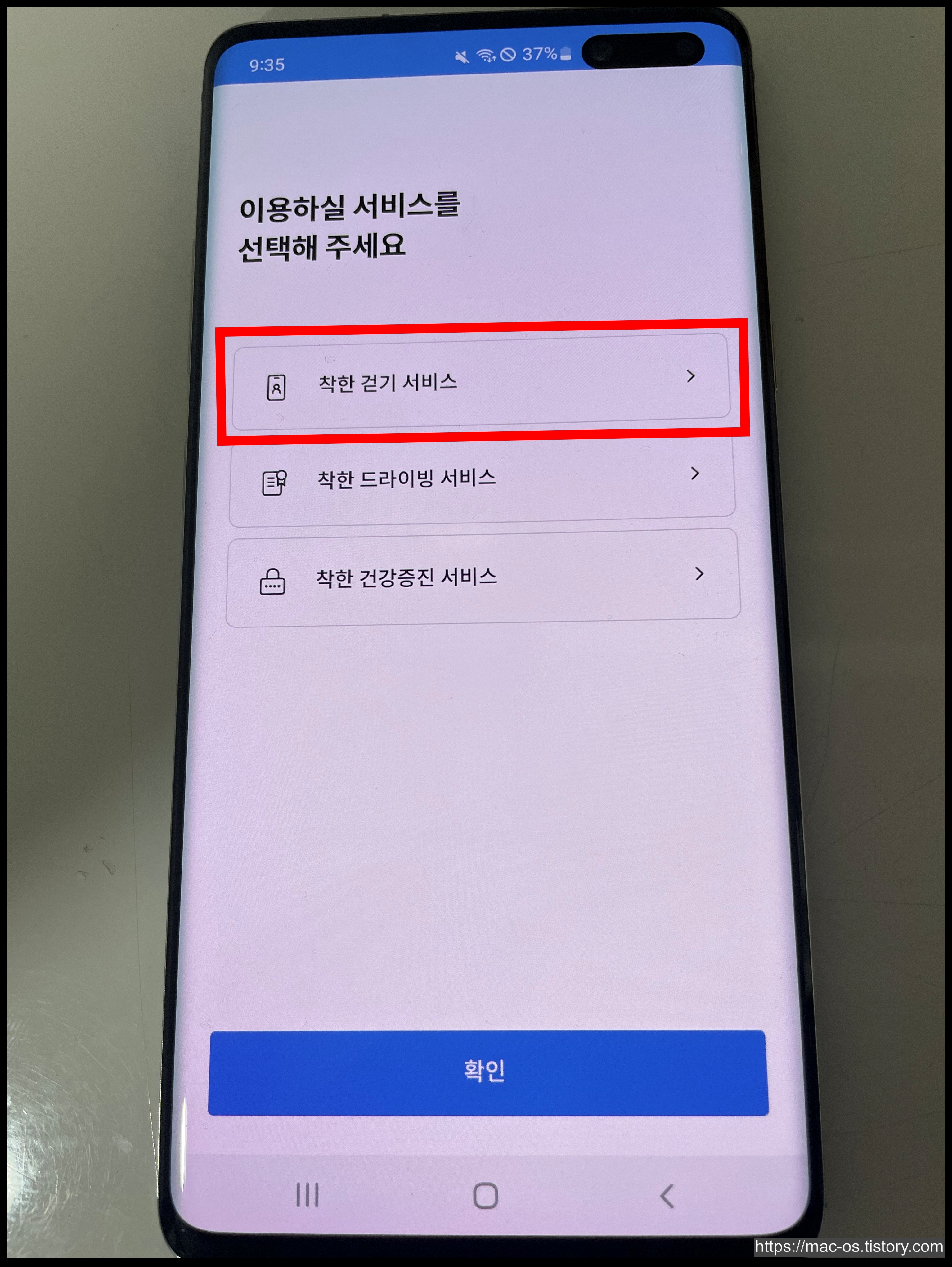 회원가입을 마치고 나서 착한 걷기 서비스를 선택합니다. 그리고 착한걷기 이용하기를 누릅니다.