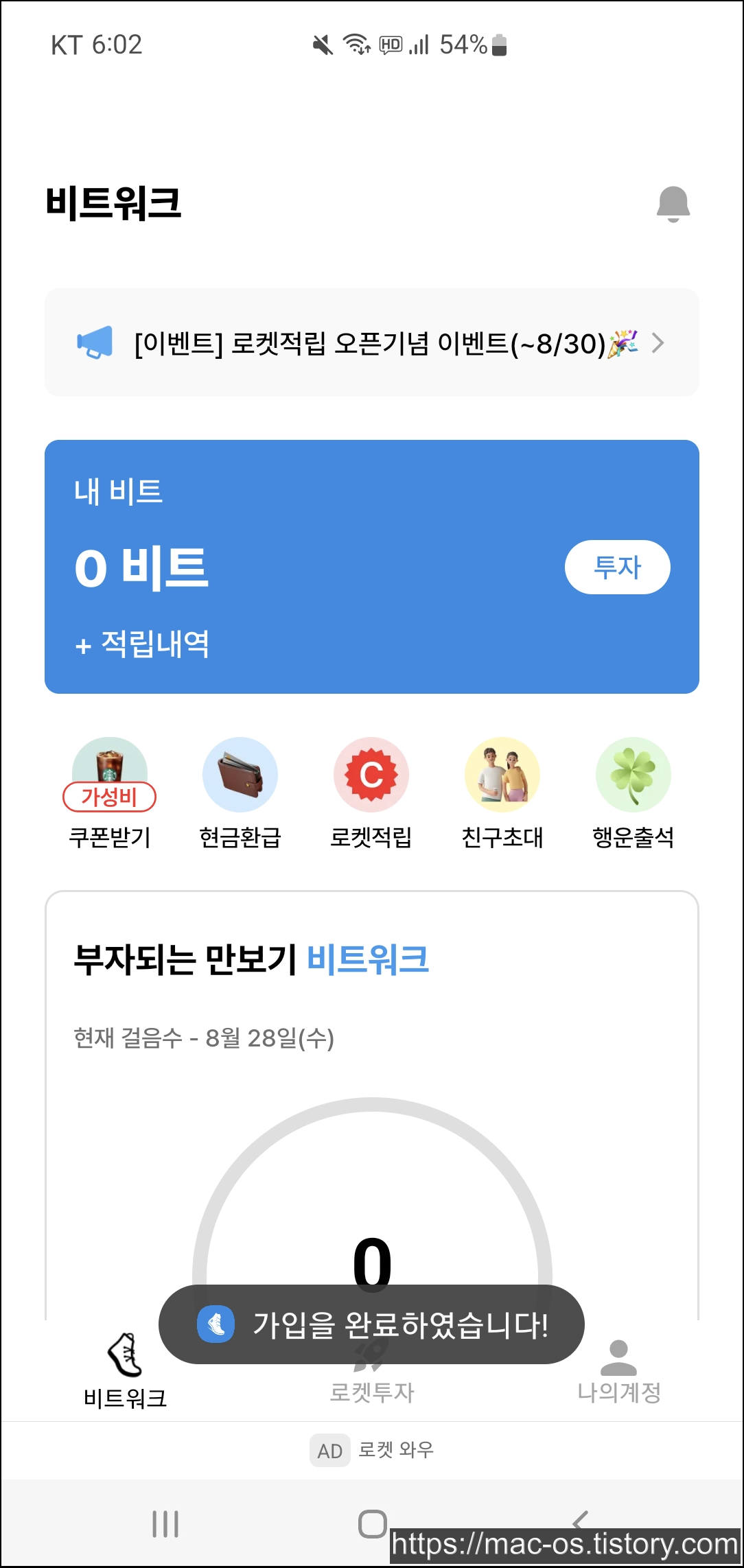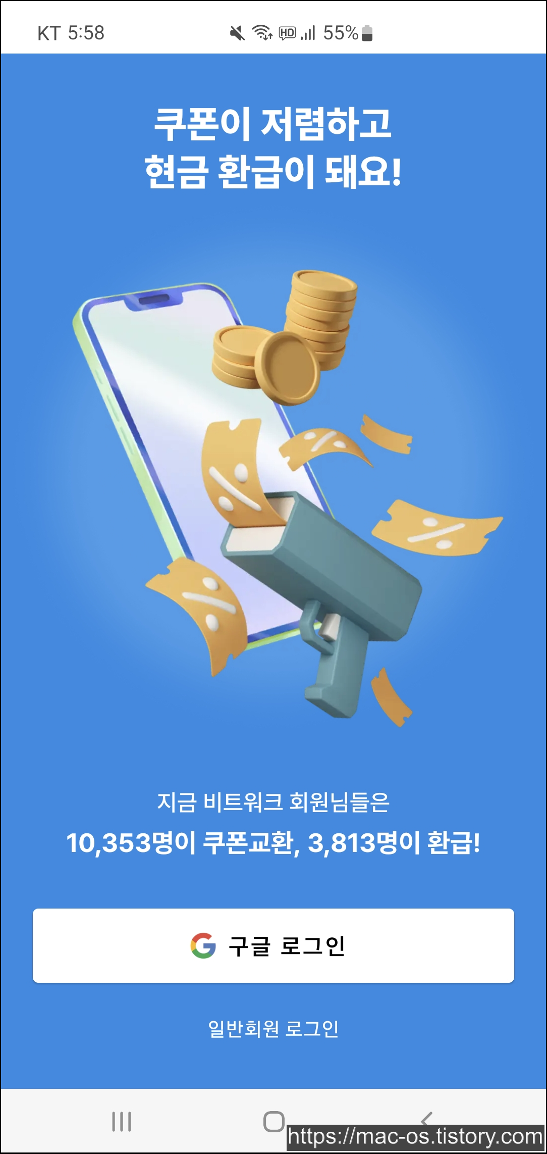 비트워크는 구글 플레이 스토어와 애플 앱스토어에서 설치할 수 있습니다. 저는 구글 로그인으로 가입했습니다.