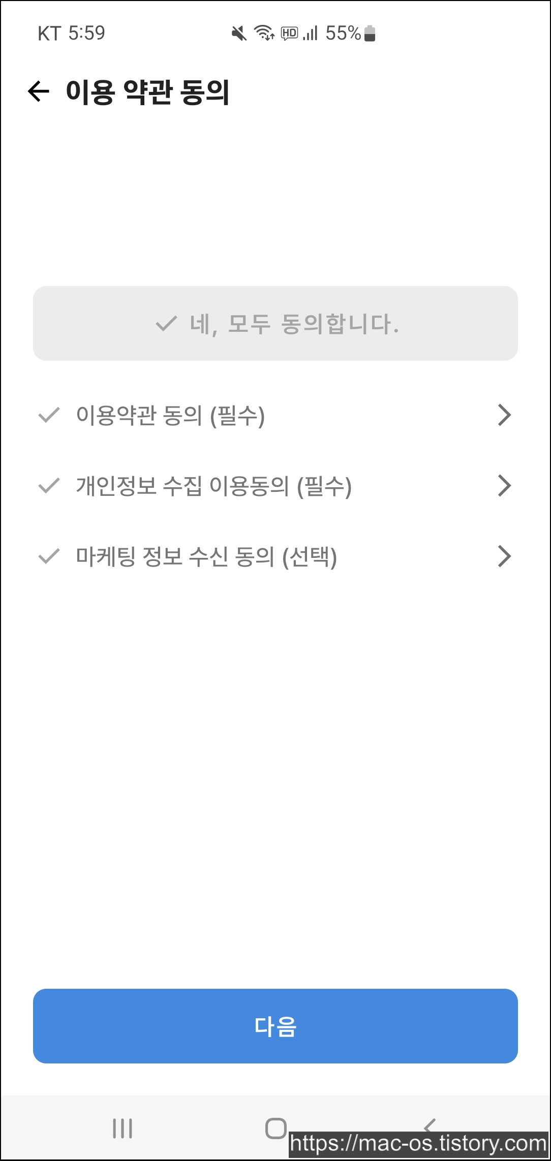 이용약관에 동의하고 전화번호 인증을 진행합니다.