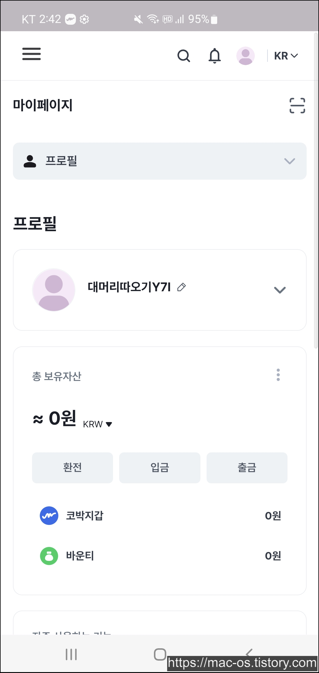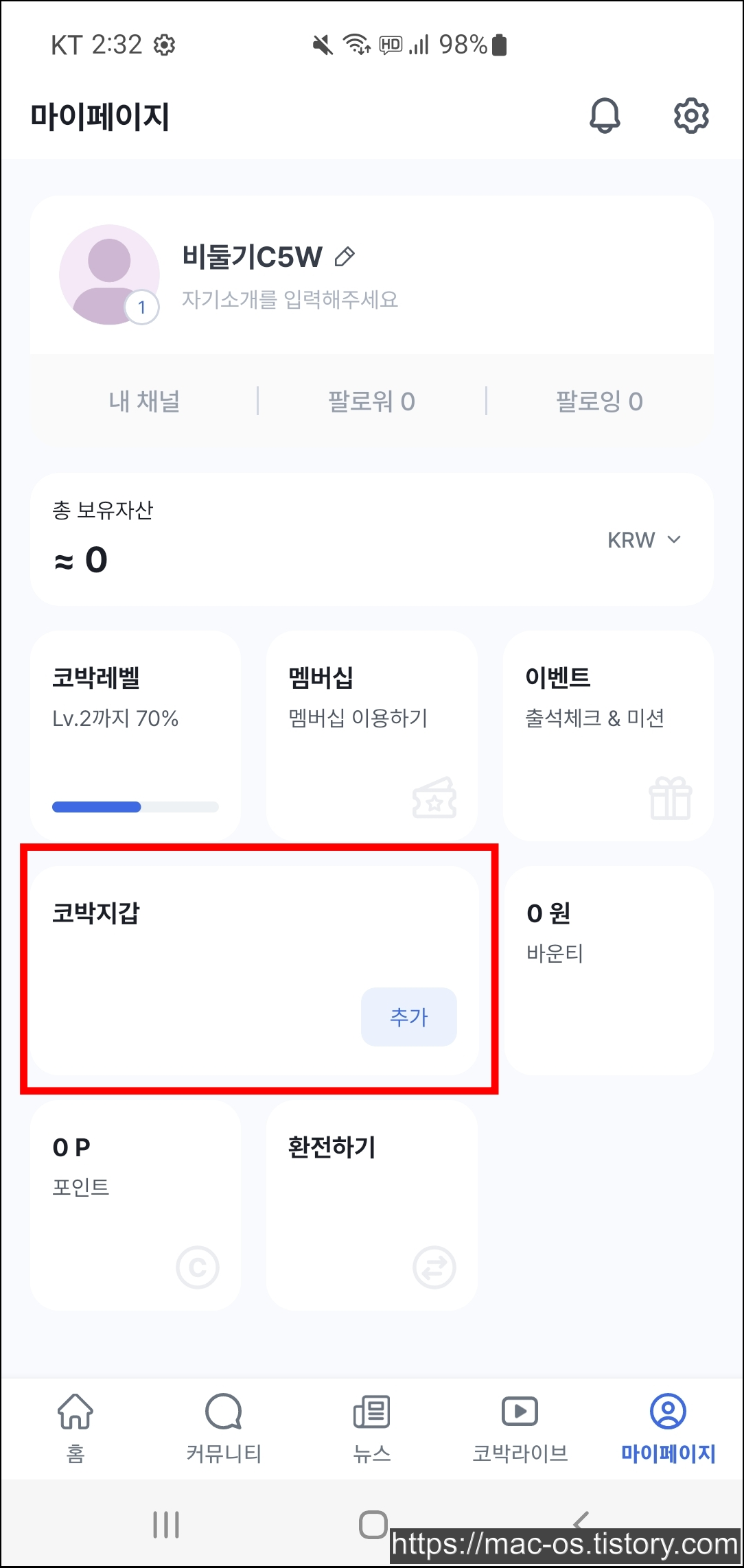 서비스 이용약관에 동의하고 마이페이지에서 코박지갑을 터치합니다.