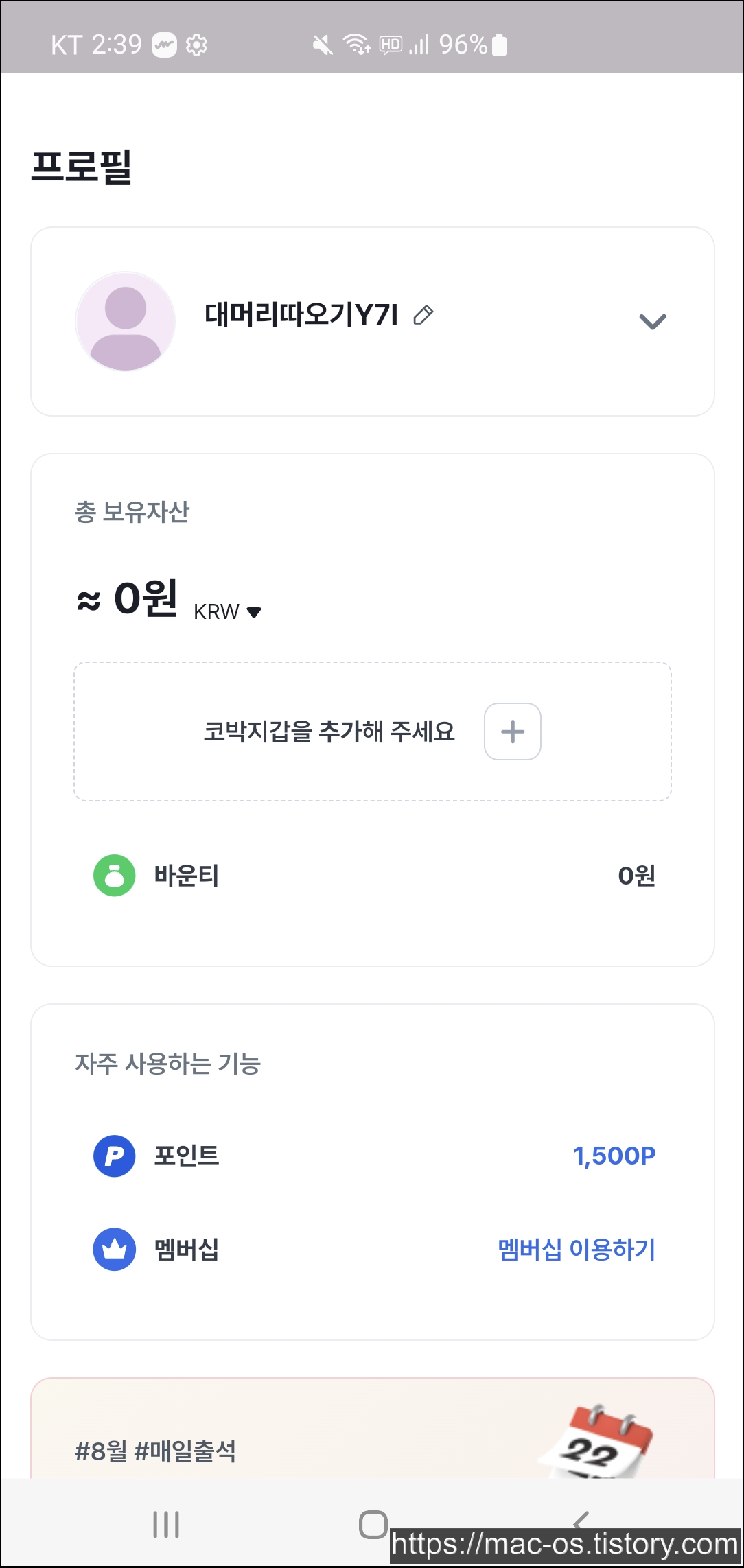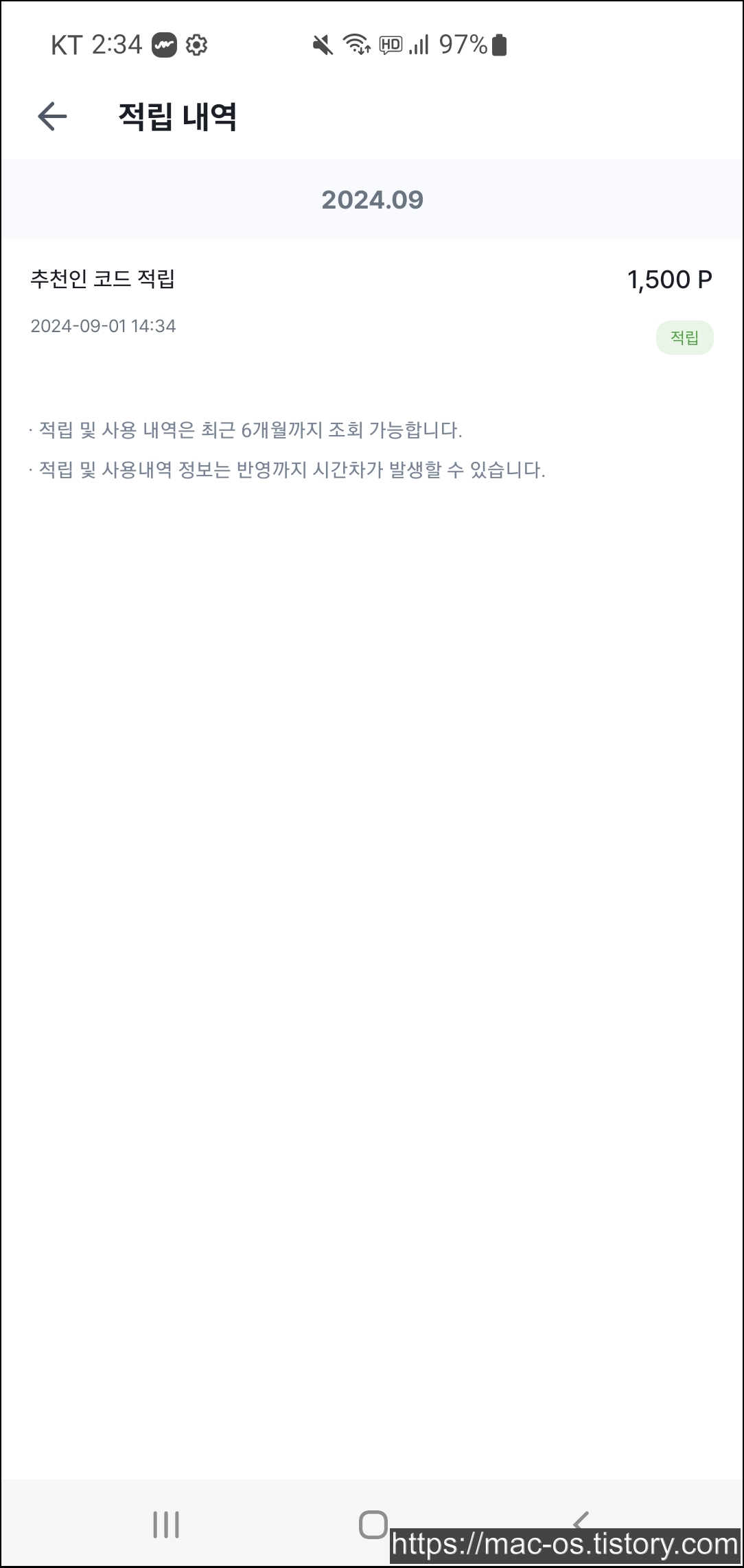 참고로 추천인을 입력하면 1500포인트를 받습니다.
