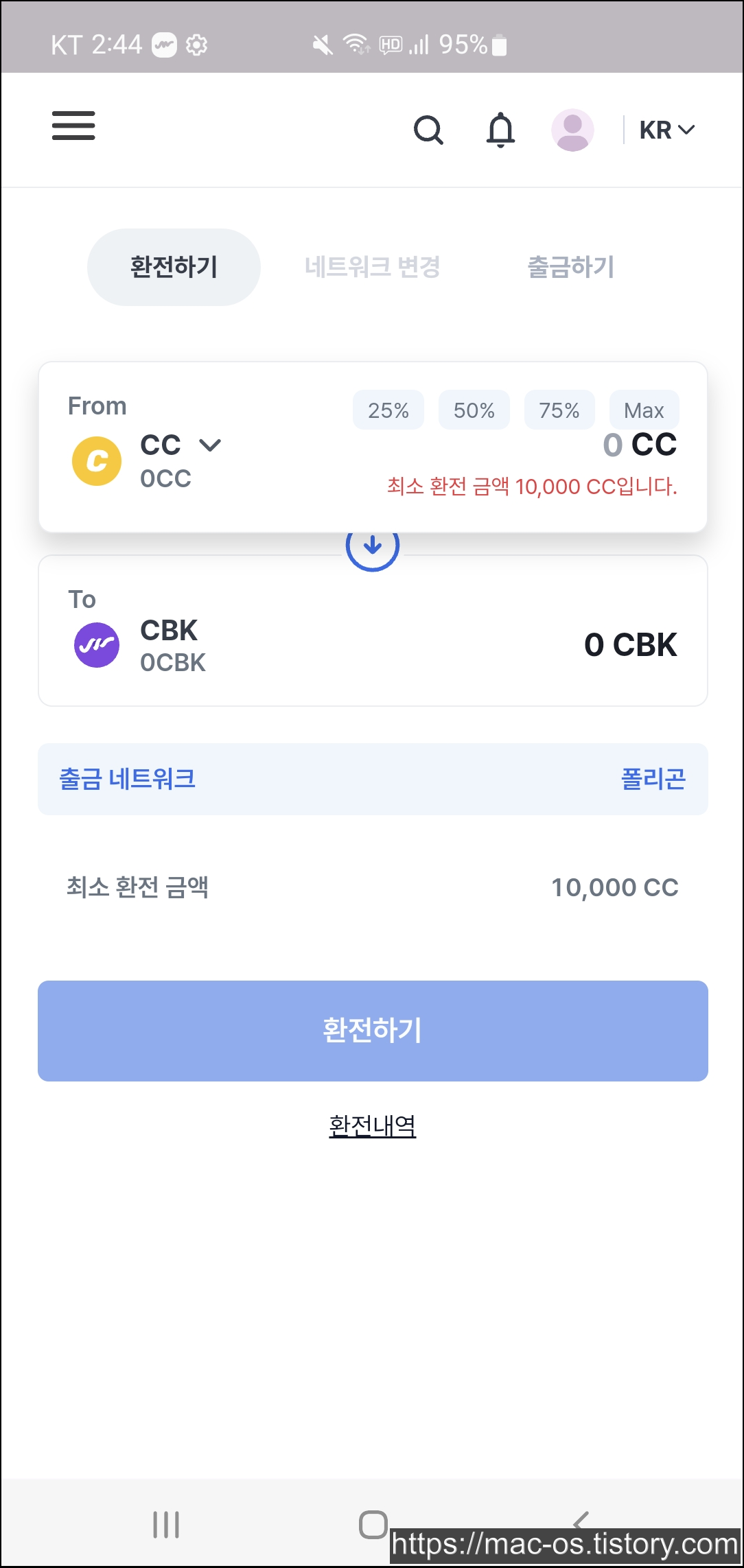 CC라는 코인은 또 CBK라는 코인으로 환전이 가능하구요. CBK는 코박토큰을 부르는 말인데, 포인트>CC>CBK 이 순서대로 환전해서 CBK를 출금하면 결국 현금화할 수 있습니다. CBK는 업비트에 상장되어 있어서 현금화하기도 편리합니다.