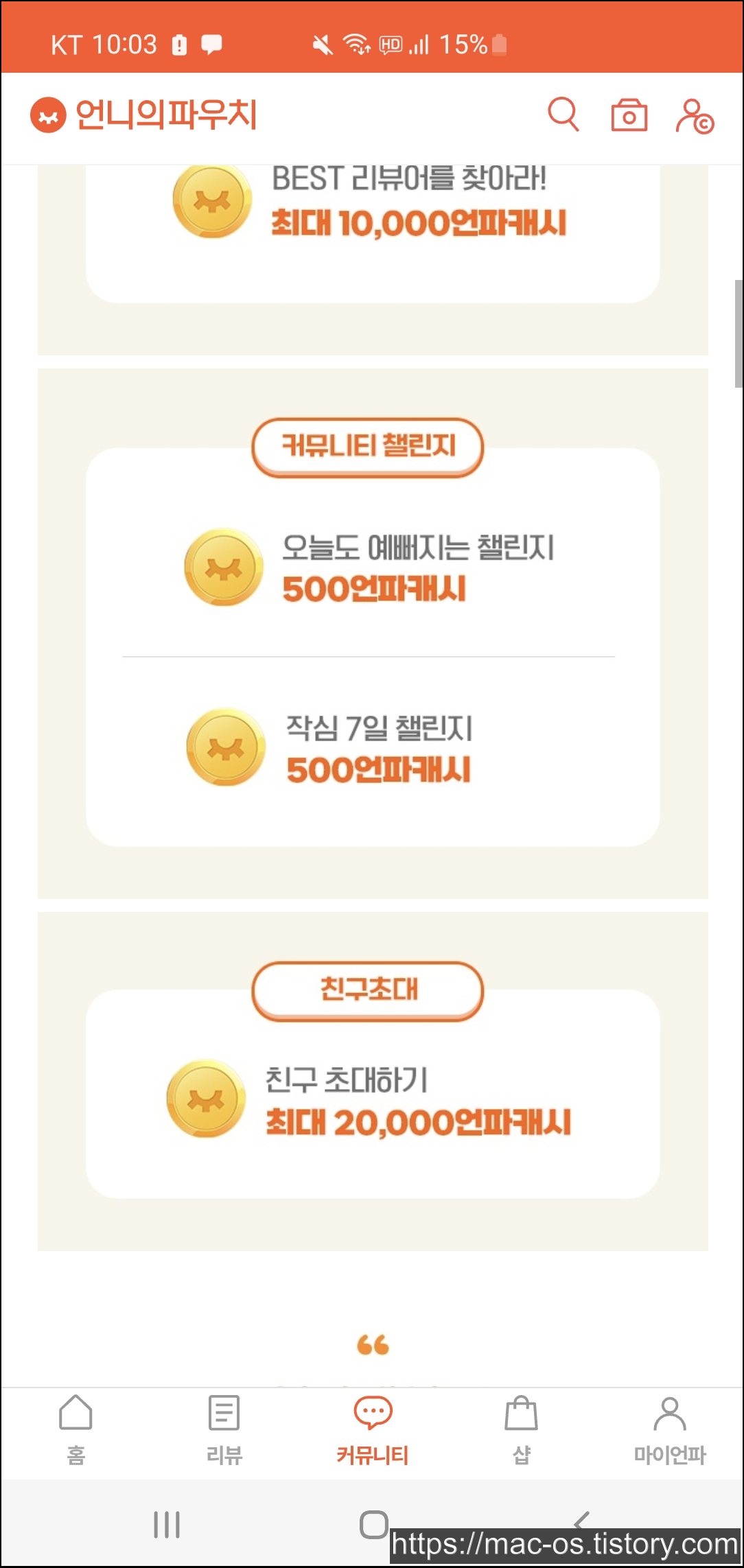 언니의파우치 추천인 : X73FAH6J (복사 가능)