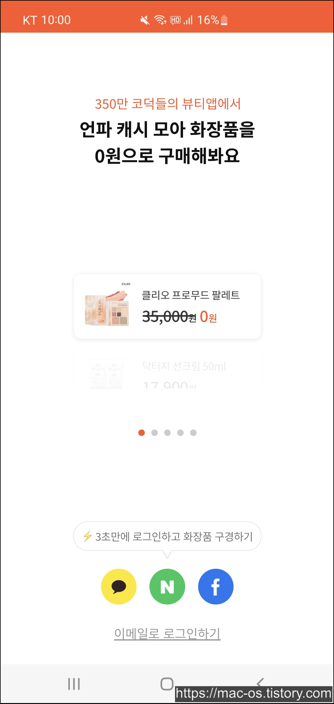 언니의파우치는 구글 플레이 스토어에서 설치할 수 있습니다. 카카오톡, 네이버, 페이스북 계정을 통해 로그인하면 가입이 진행됩니다.
