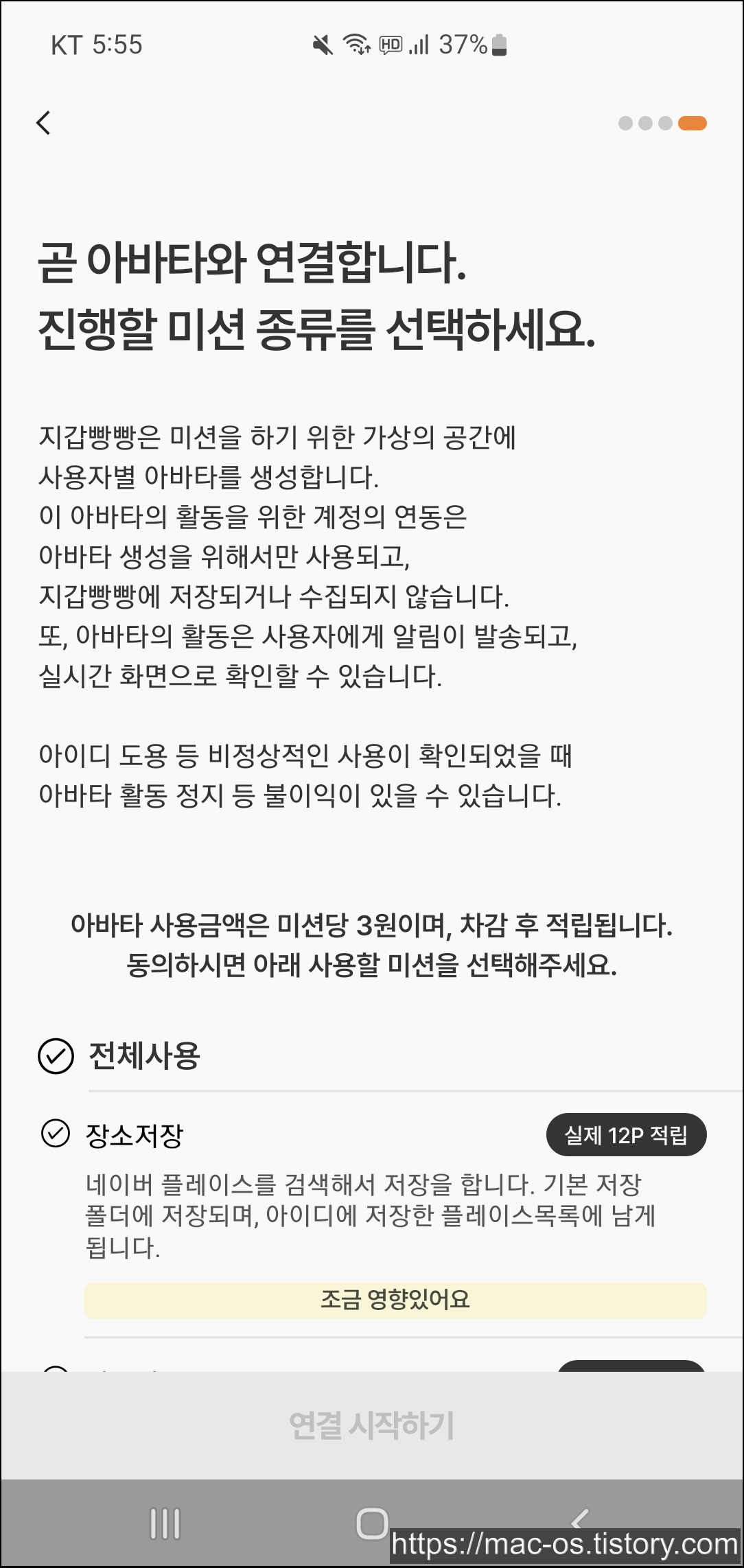 아바타 미션말고 퀴즈 맞추기, 따라하기 미션 등이 있고 여기서 직접 참여하면 아바타 사용비용 3P가 차감되지 않고 적립됩니다.